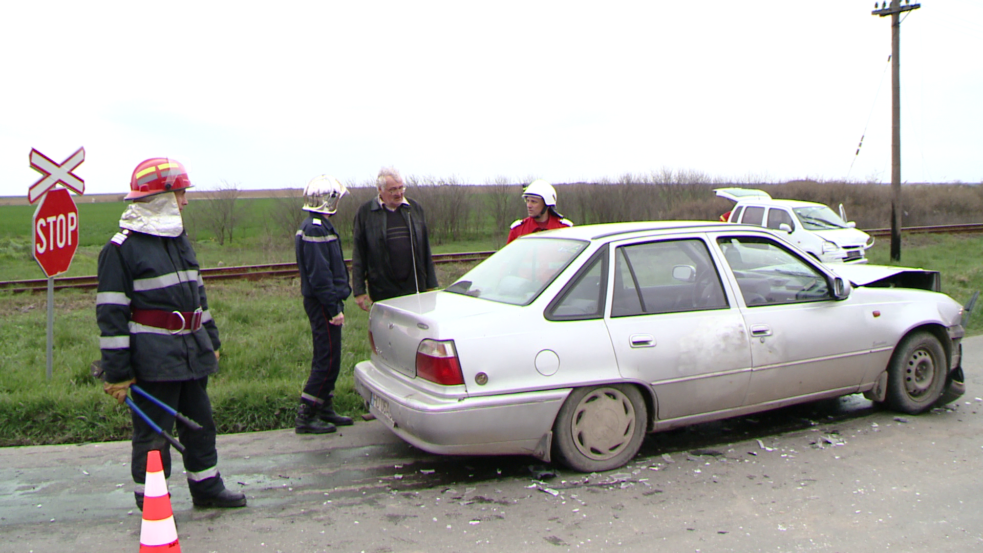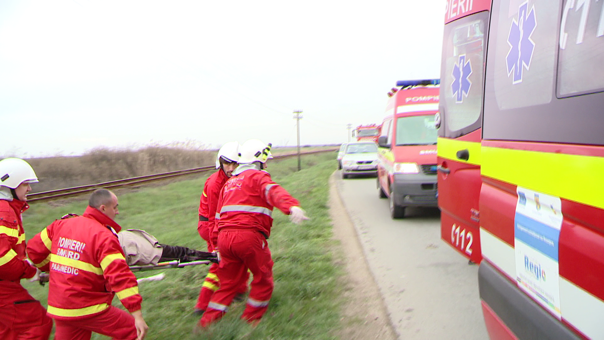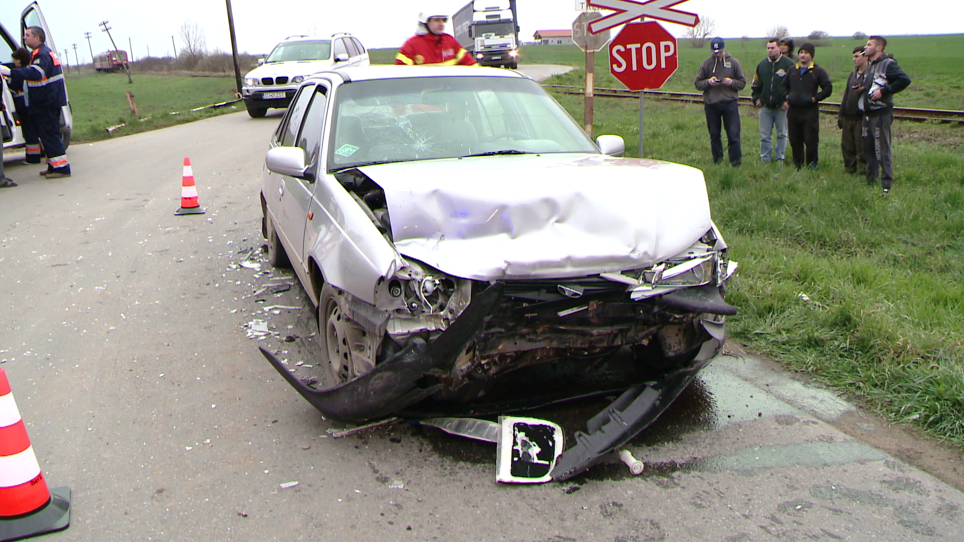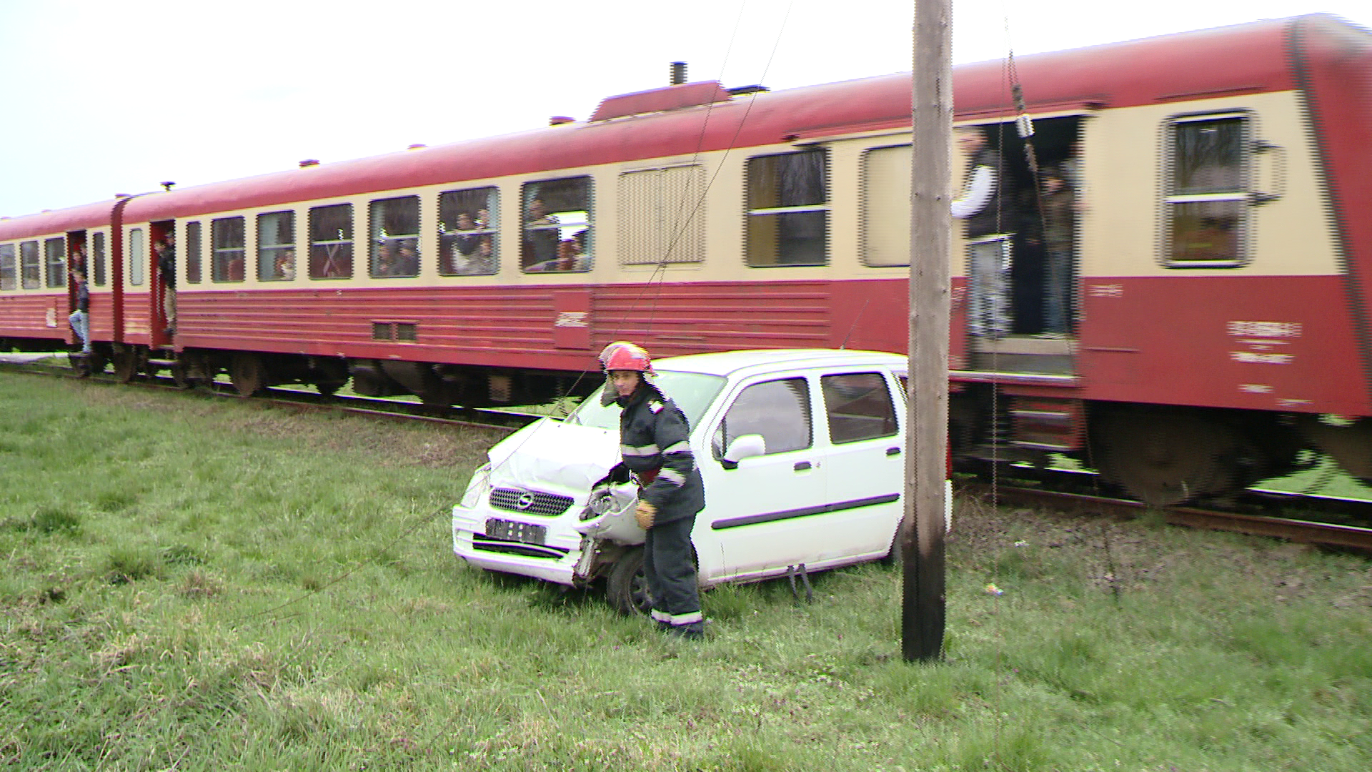 Autoturismul lovit a fost aruncat apoi cativa metri, pe camp, foarte aproape de calea ferata.