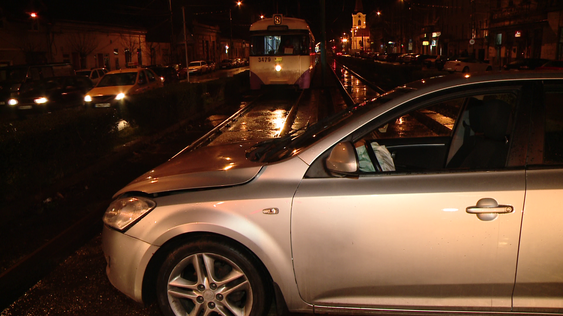 Dublu impact pe un bulevard din Timisoara. O soferita bauta a lovit doua masini parcate si s-a oprit pe liniile de tramvai