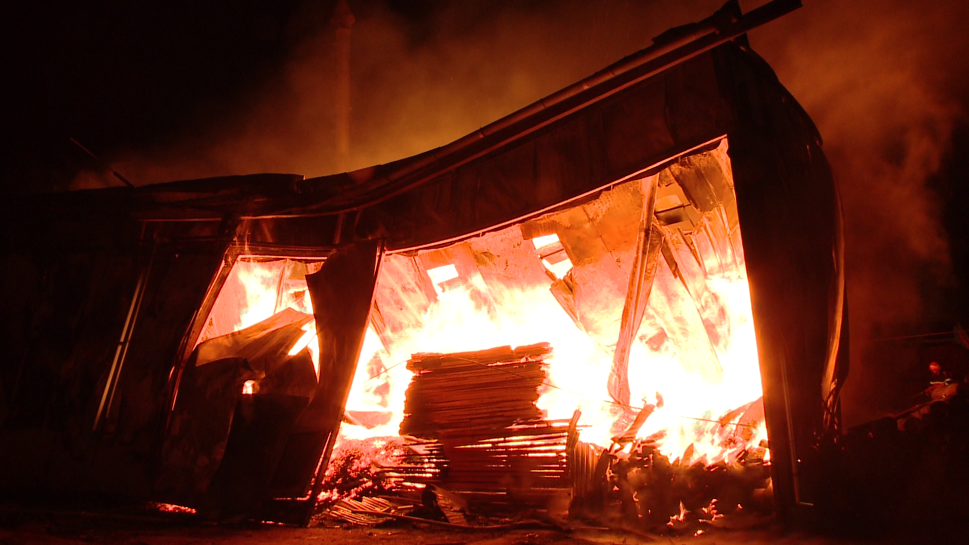 Incendiu de proportii azi-noapte, intr-un cartier din Timisoara. Un depozit de lemne s-a facut scrum, dupa ce flacarile uriase l-au invaluit cu repeziciune.