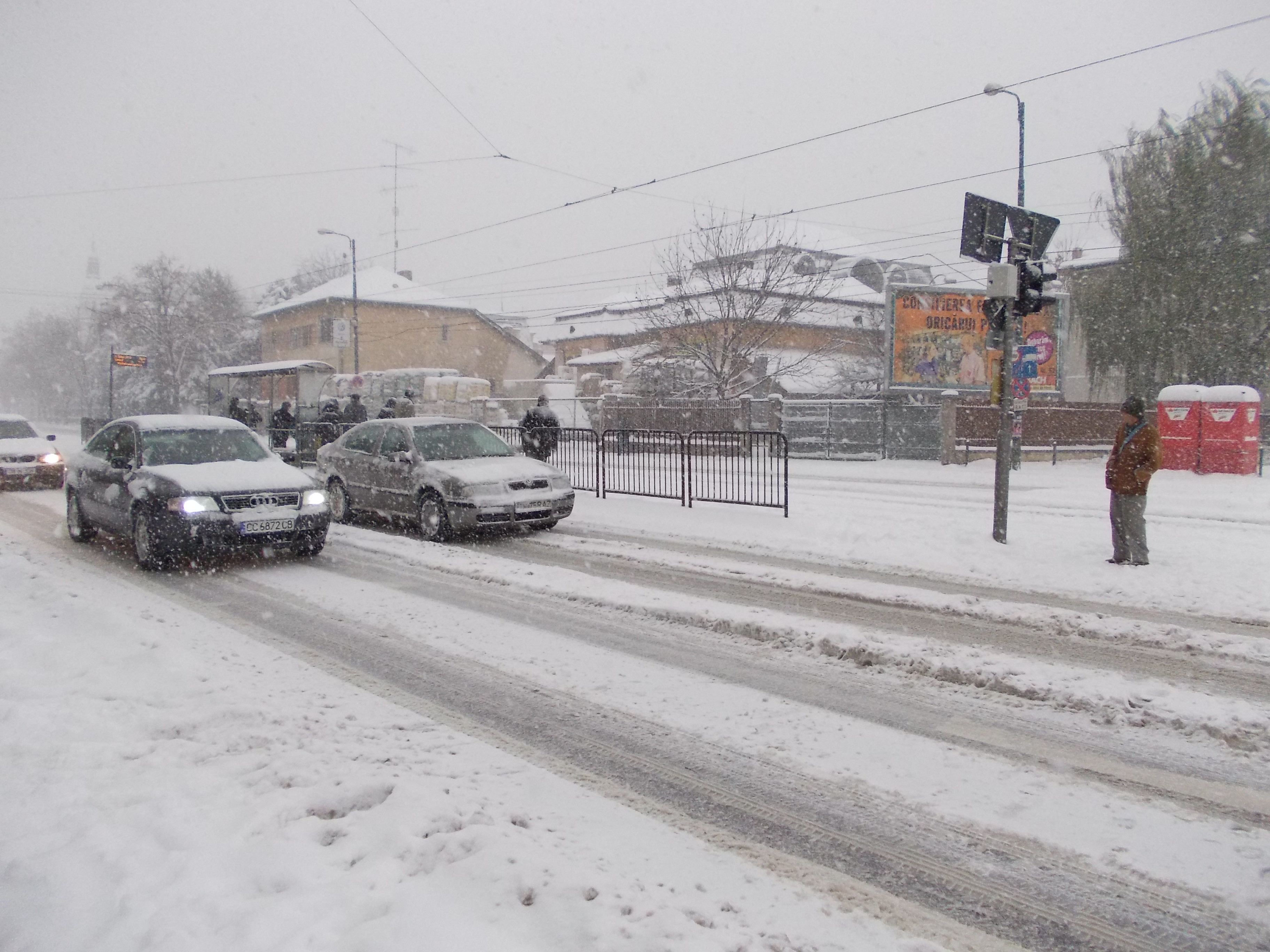 Blocaje in trafic, dupa prima ninsoare in Timisoara. Drumurile au fost acoperite de zapada. VIDEO
