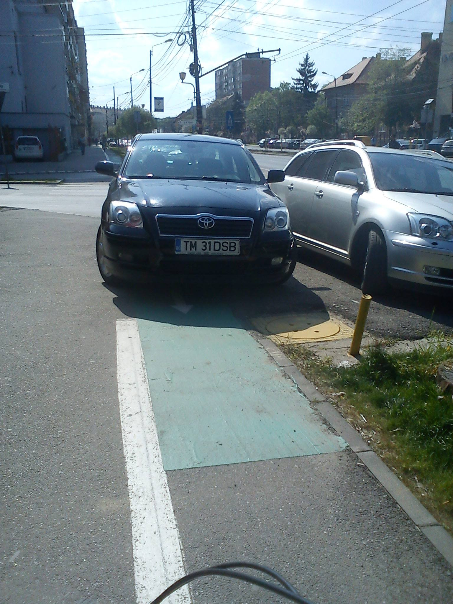 Cele mai dese multe fotografii publicate pe “lista rusinii” sunt masinile parcate pe pistele de biciclete. Zeci de autoturisme au devenit adevarate obstacole pentru biciclistii din Timisoara, astfel ca, daca politia nu ii amendeaza pe soferi, atunci macar “ii vede toata lumea”.