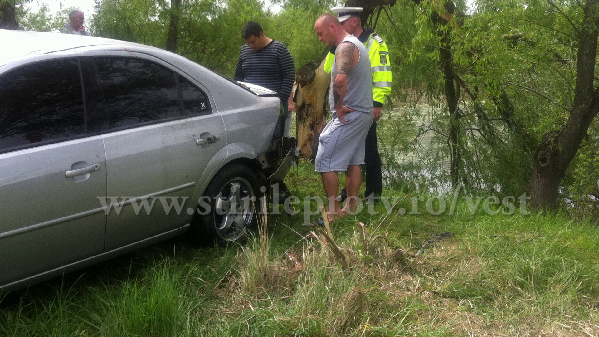 Accidentul s-a petrecut noaptea trecuta, cand soferul autoturismul marca Ford Mondeo a pierdut controlul volanului intr-o curba si a lovit o salcie pe care a rupt-o, dupa care a plonjat cu masina in lac. Impreuna cu el, in autoturism se mai aflau doi tineri. In urma accidentului, cei trei au reusit sa iasa singuri din masina si doi dintre ei s-au dus la Spitalul Judetean din Timisoara pentru a se asigura ca sunt teferi. Aici au fost consultati de medicii care au stabilit ca sunt in afara oricarui pericol. Azi noapte a fost anuntata si Politia despre accident, care se afla in aceste momente la fata locului, impreuna cu un echipaj al pompierilor care au fost solicitati sa scoata masina din apa.