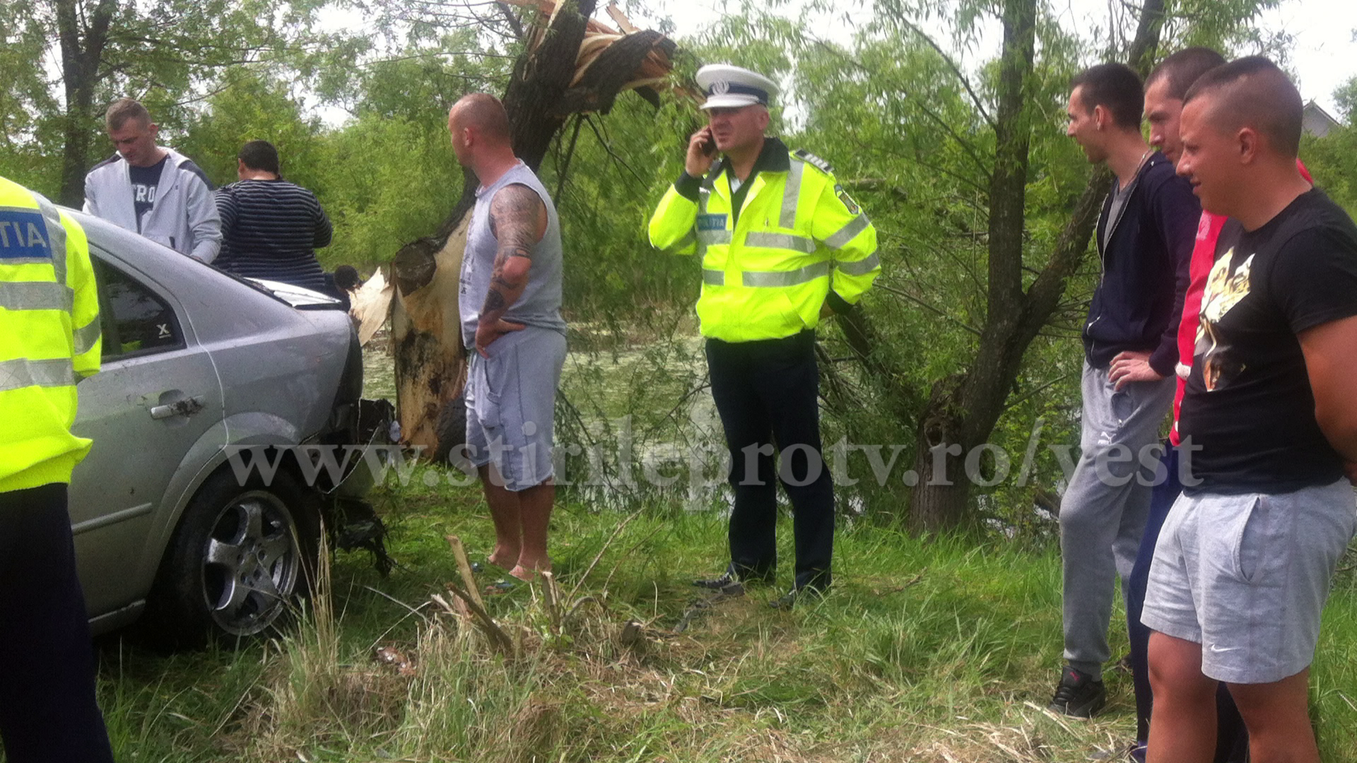 O masina a ajuns direct in lacul de langa localitatea timiseana Utvin, dupa ce soferul a pierdut controlul volanului, intr-o curba.