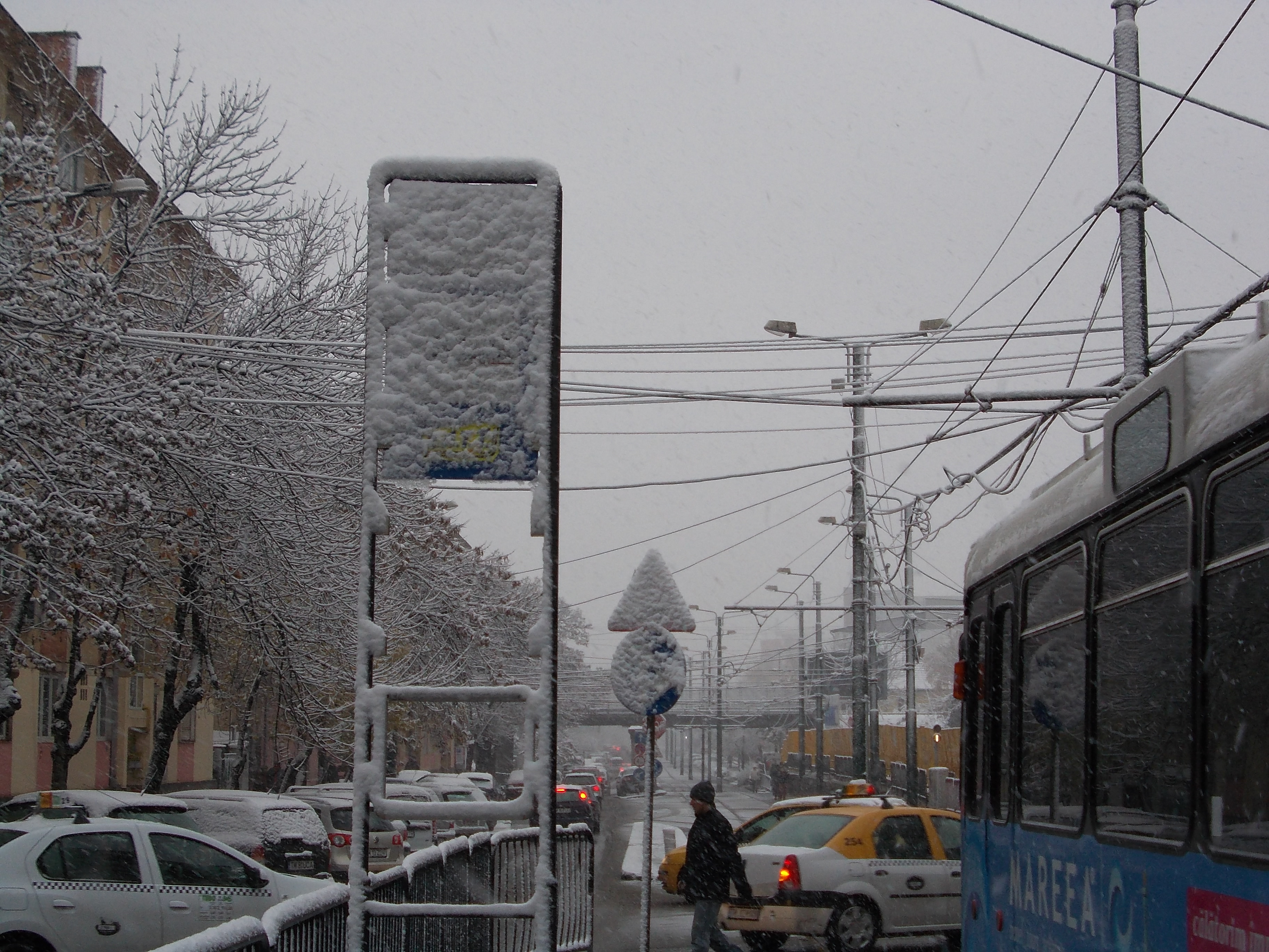 Imagini de poveste in aceasta dimineata in Timisoara. Ninsoarea a imbracat in alb masinile parcate langa blocuri, copacii de la marginea drumului, si nici trotuarele nu au "scapat" de covorul alb. Din fericire, prima ninsoare nu a creat probleme in trafic, insa soferii circula in conditii de iarna.