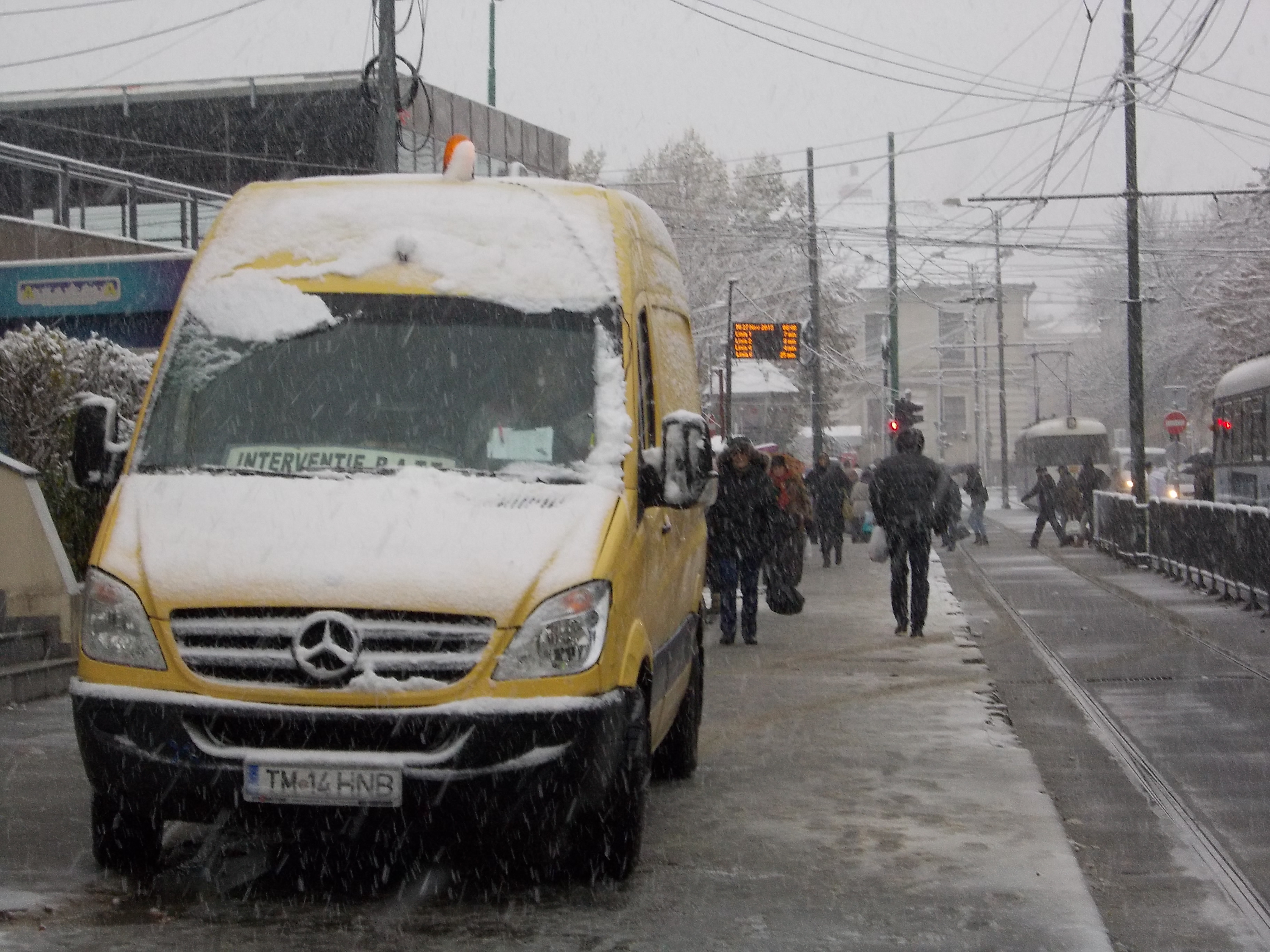 UPDATE 12:00: Noaptea trecuta in Timisoara au actionat cinci utilaje pentru a imprastia zece tone material antiderapant.