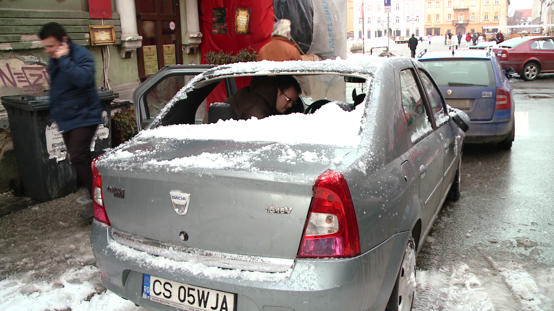 Numai in ultimele doua zile, zeci de timisoreni au sunat la politie si s-au plans ca masinile lor au fost distruse de zapada care a cazut de pe acoperisurile din Timisoara.