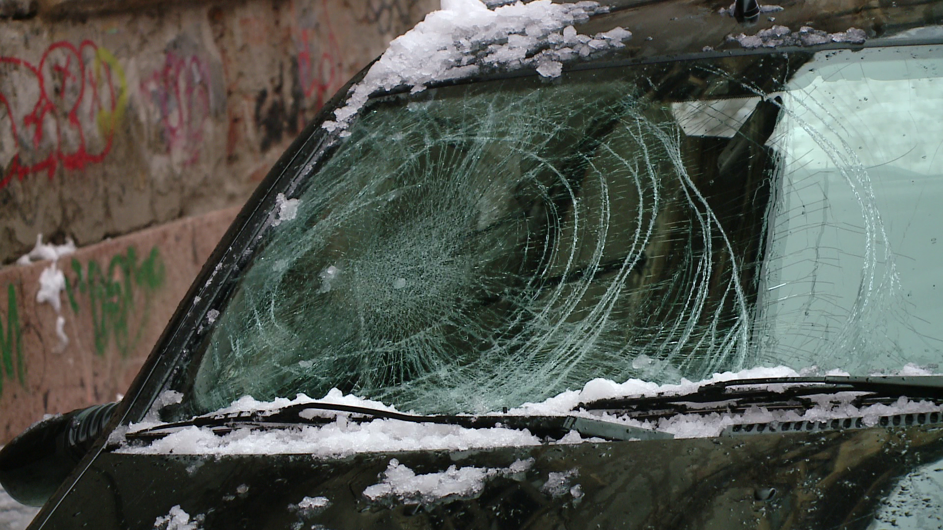 In plin centrul orasului, soferii care au avut ghinionul sa-si lase masinile parcate langa trotuare le-au gasit fie cu parbrizele si lunetele sparte, fie cu capota indoita.