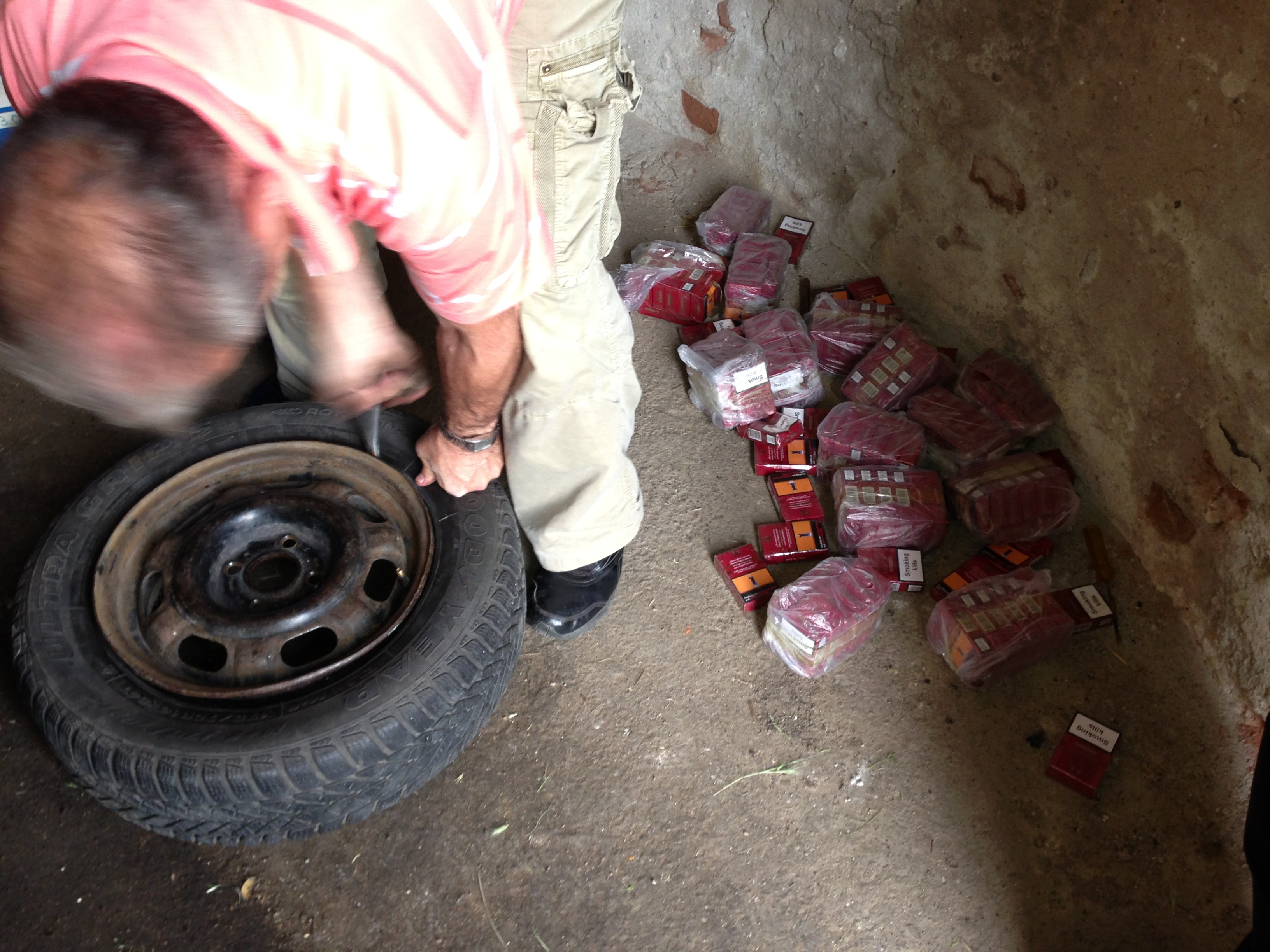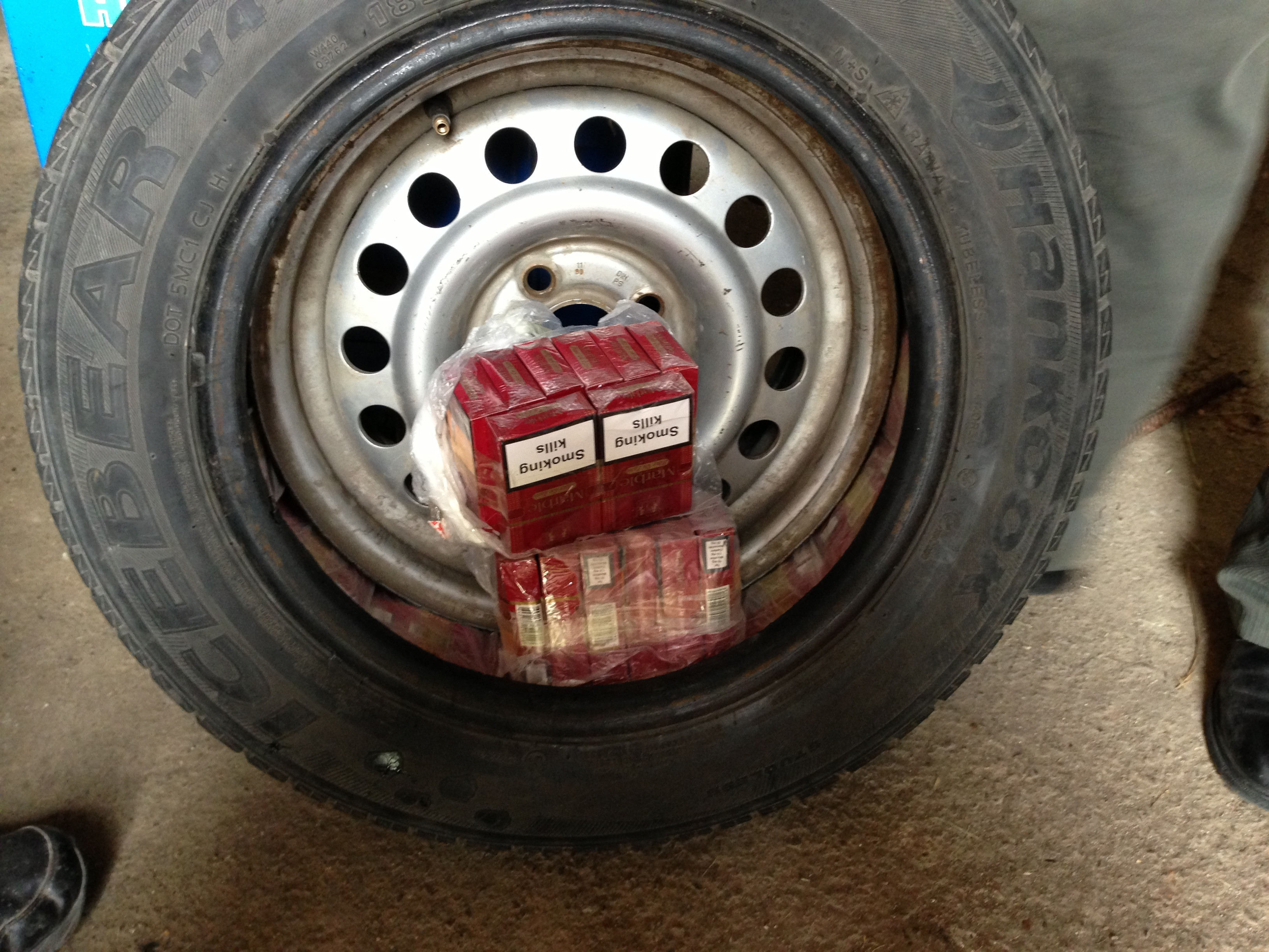Politistii de frontiera au gasit 500 de pachete de tigari de contrabanda in rotile unei masini. FOTO