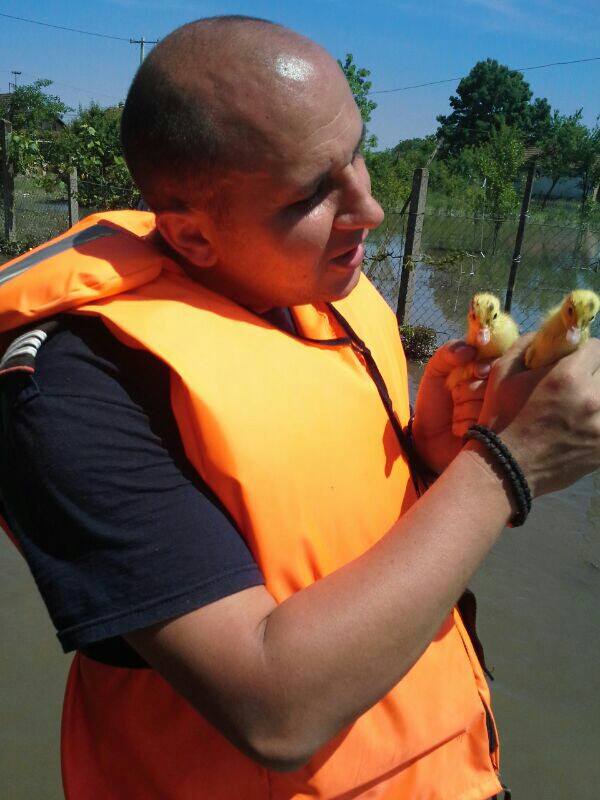 Pompierii timiseni au salvat mii de animale din gospodariile afectate de inundatii, in Serbia
