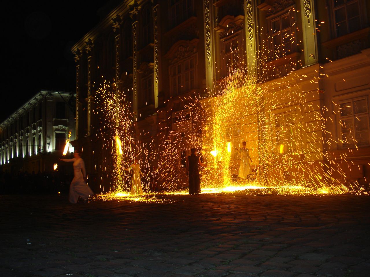 Prima editie a Festivalului Baroc s-a incheiat cu un spectacol de foc sustinut de trupa Shadows, specialisti in arta manipularii focului.