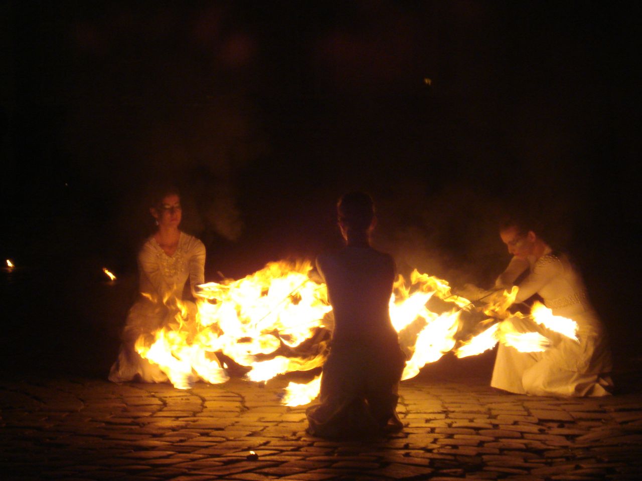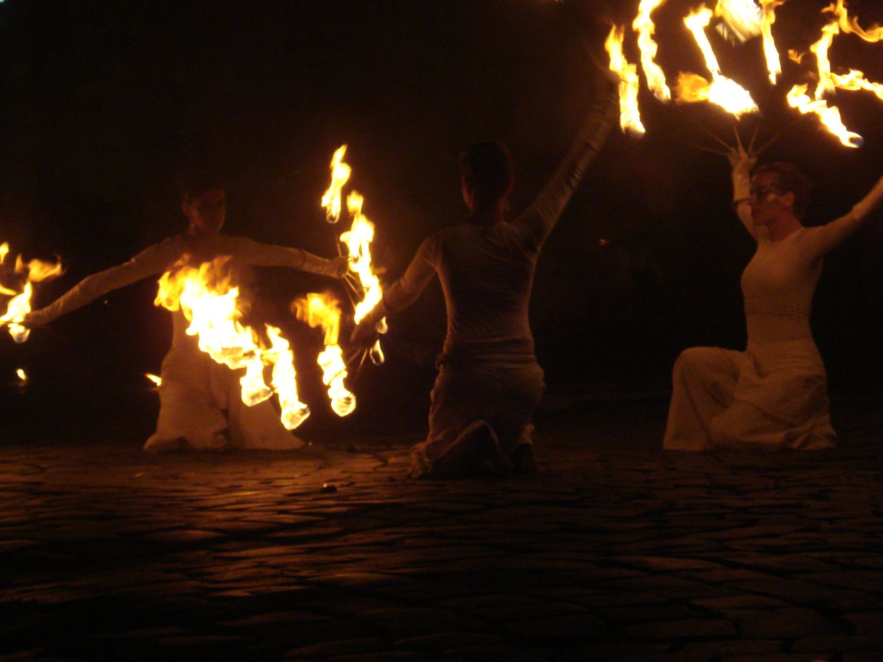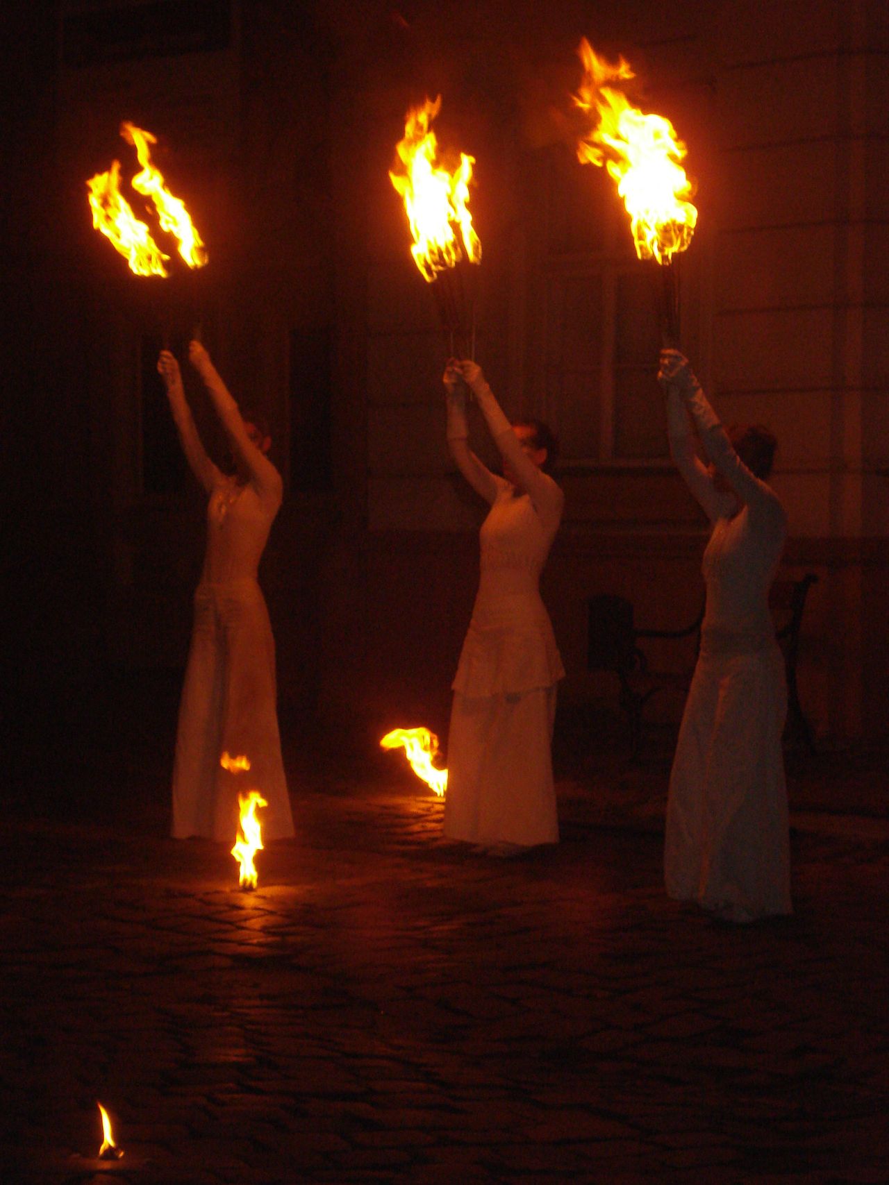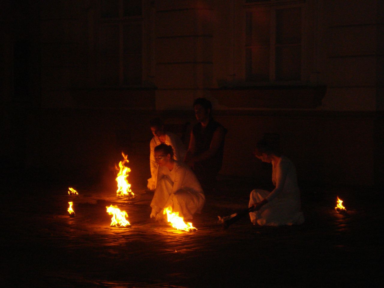 Dupa lasarea serii, zeci de timisoreni s-a strans in Piata Unirii si au urmarit cu sufletul la gura jongleriile cu foc ale trupei Shadows. Demonstratiile s-au desfasurat pe ritmuri de muzica baroca.