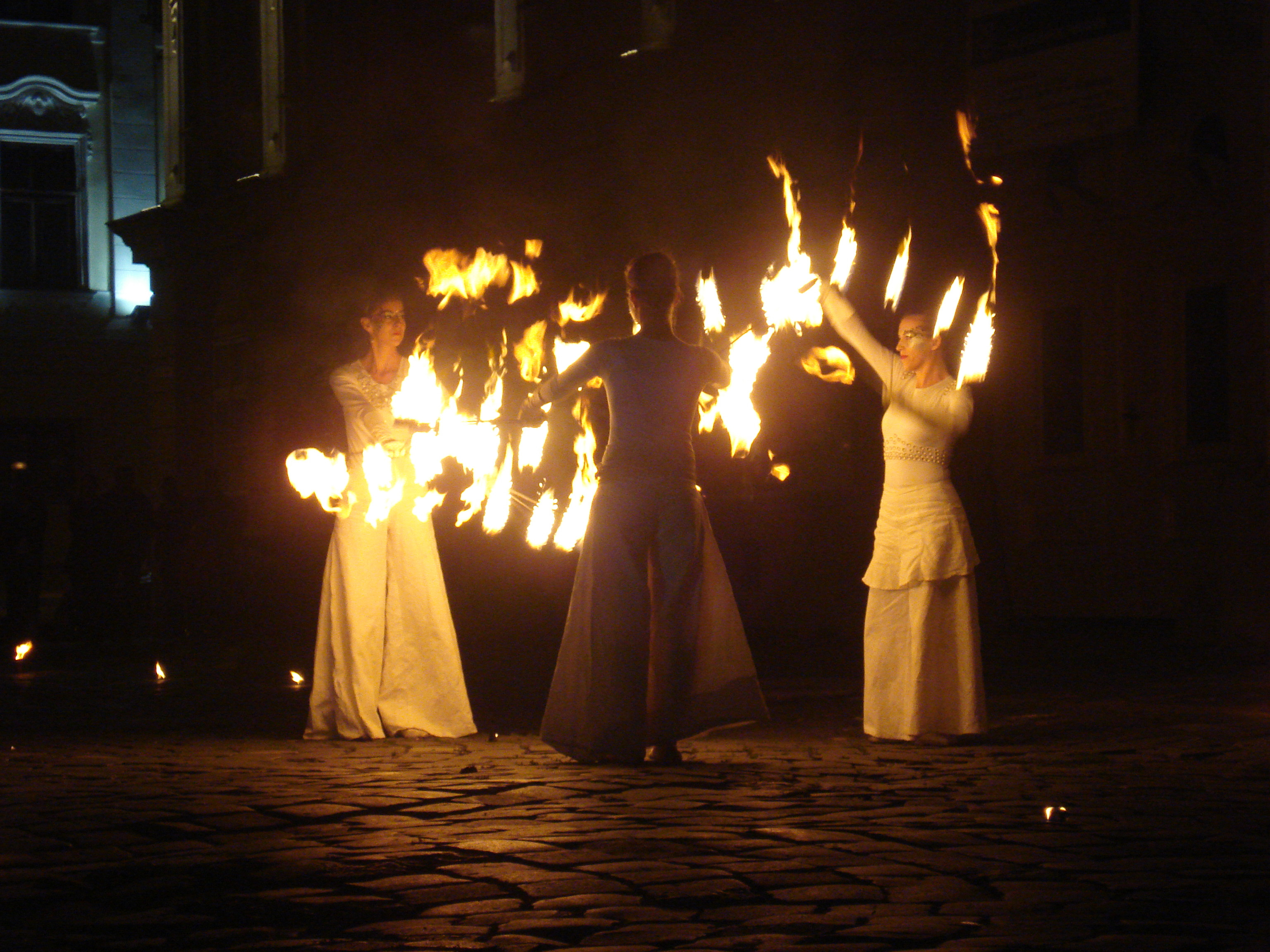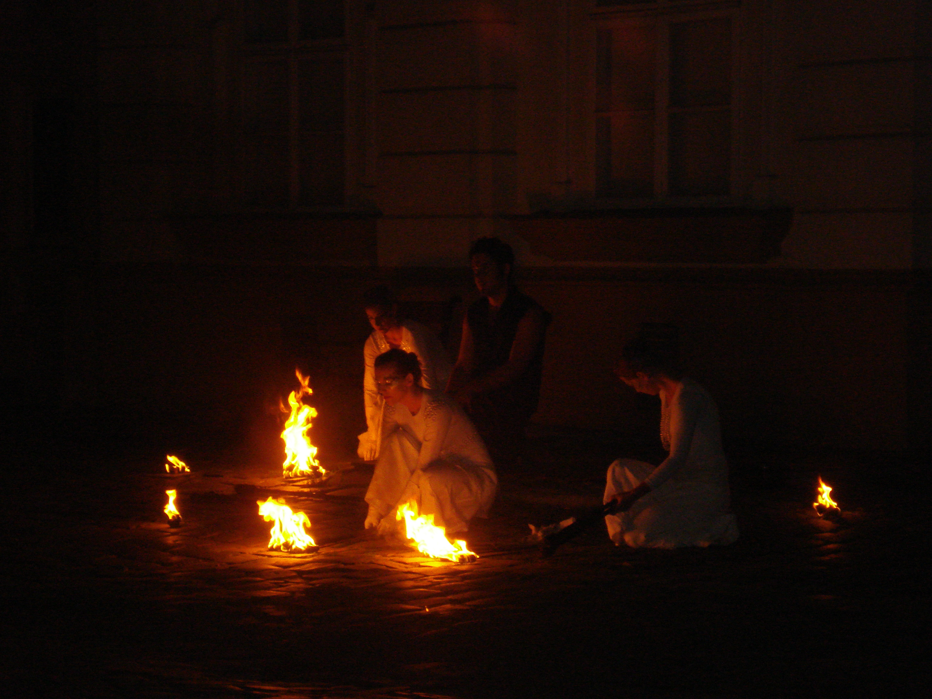 Spectacol incendiar, la propriu, in Piata Unirii din Timisoara.