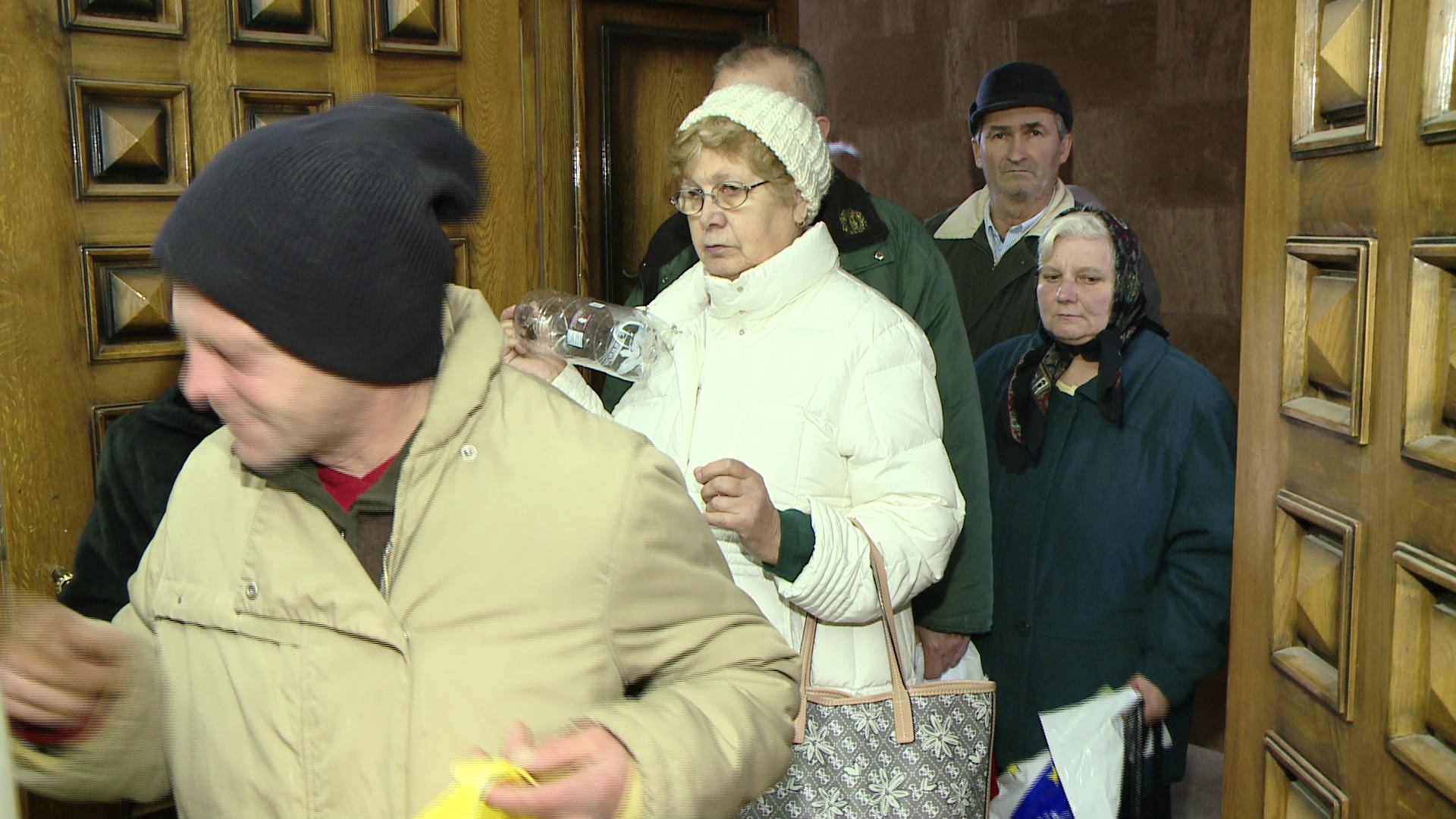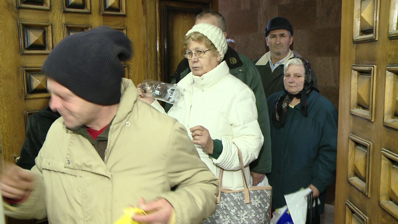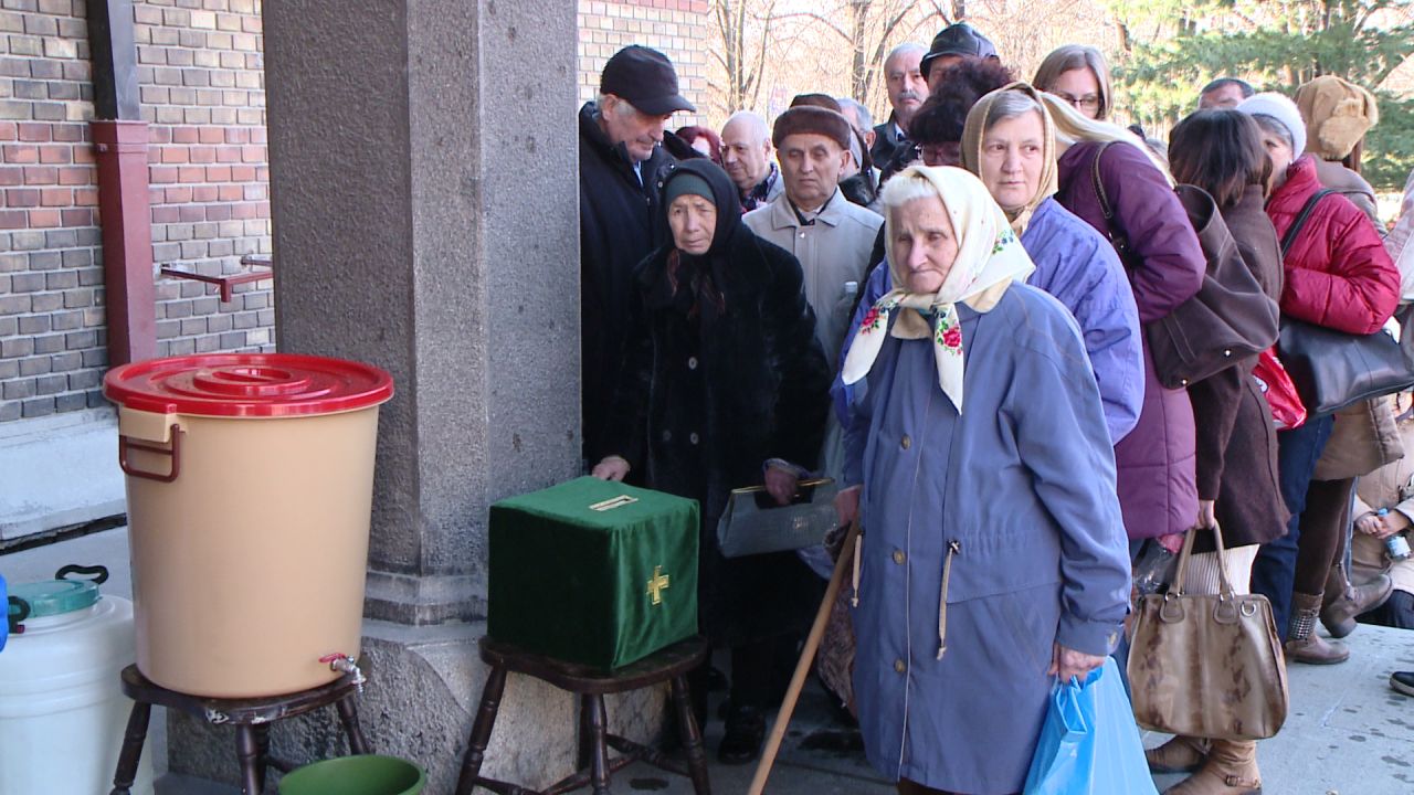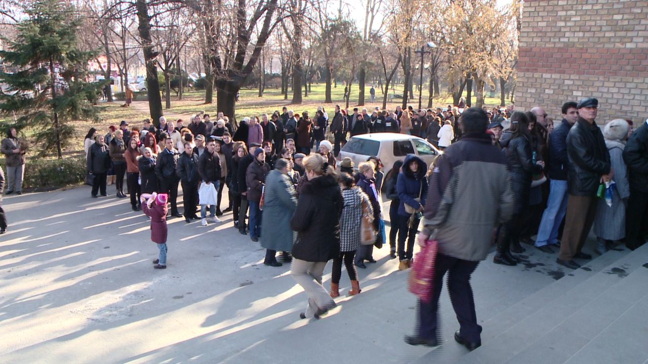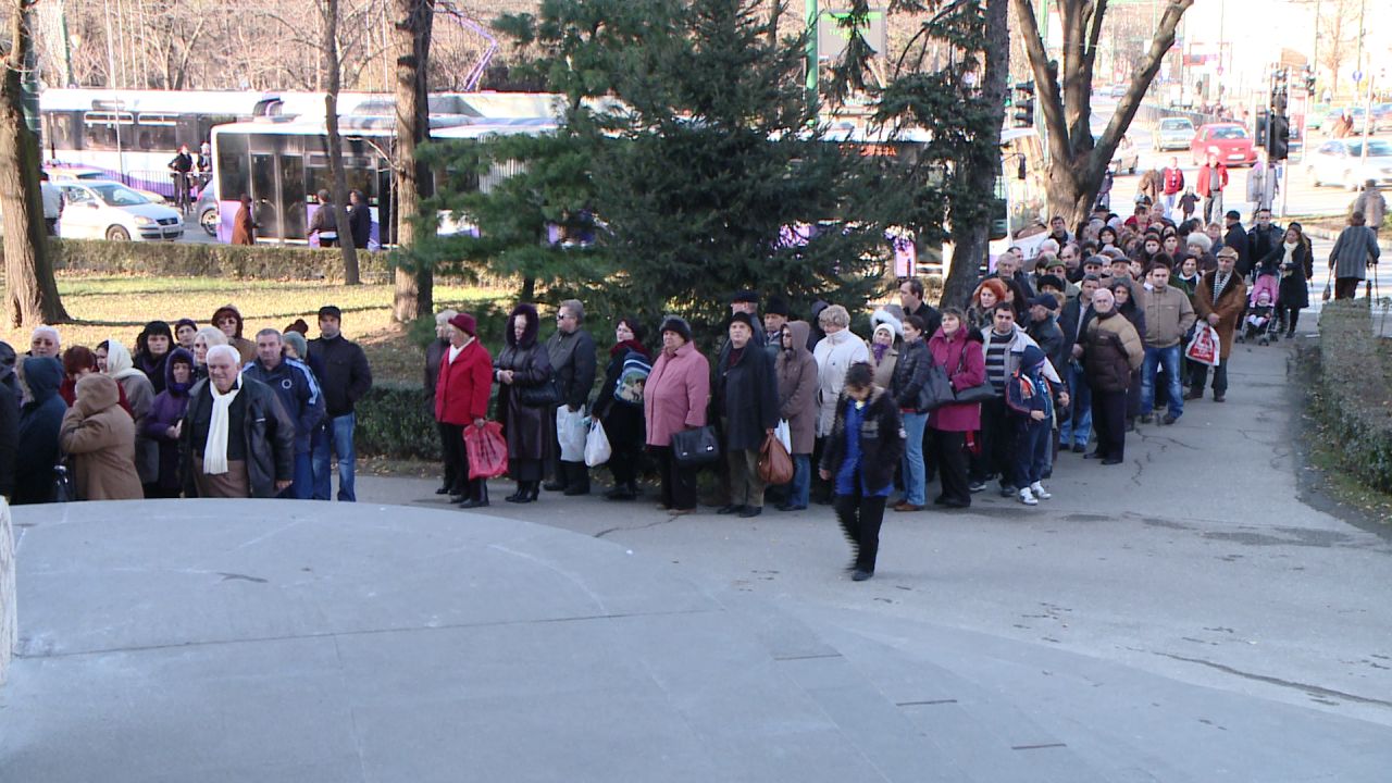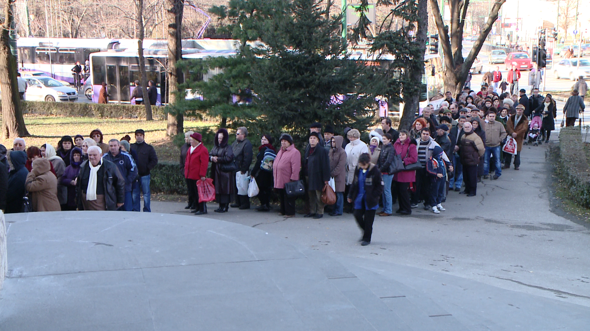 Sute de credinciosi s-au asezat la cozi pentru a lua apa sfintita de la bisericile din Timisoara