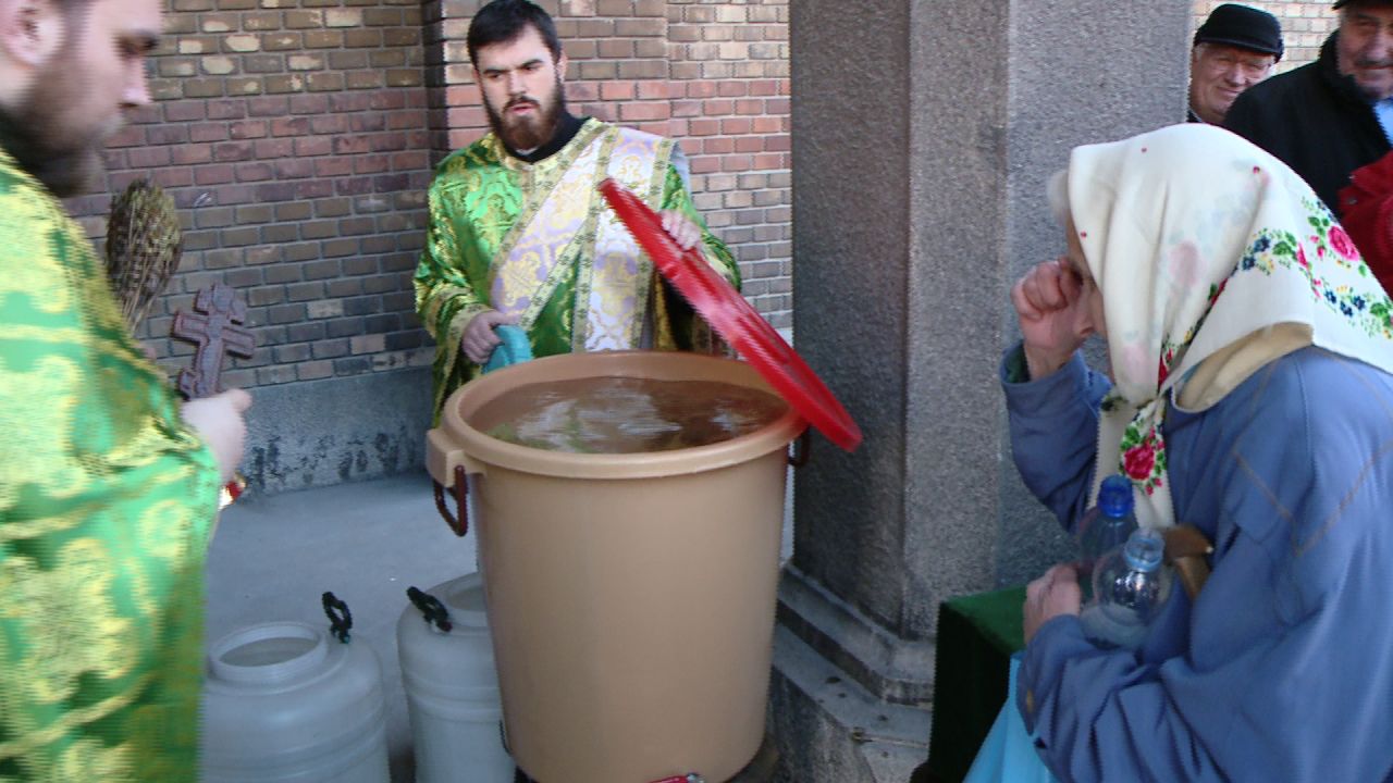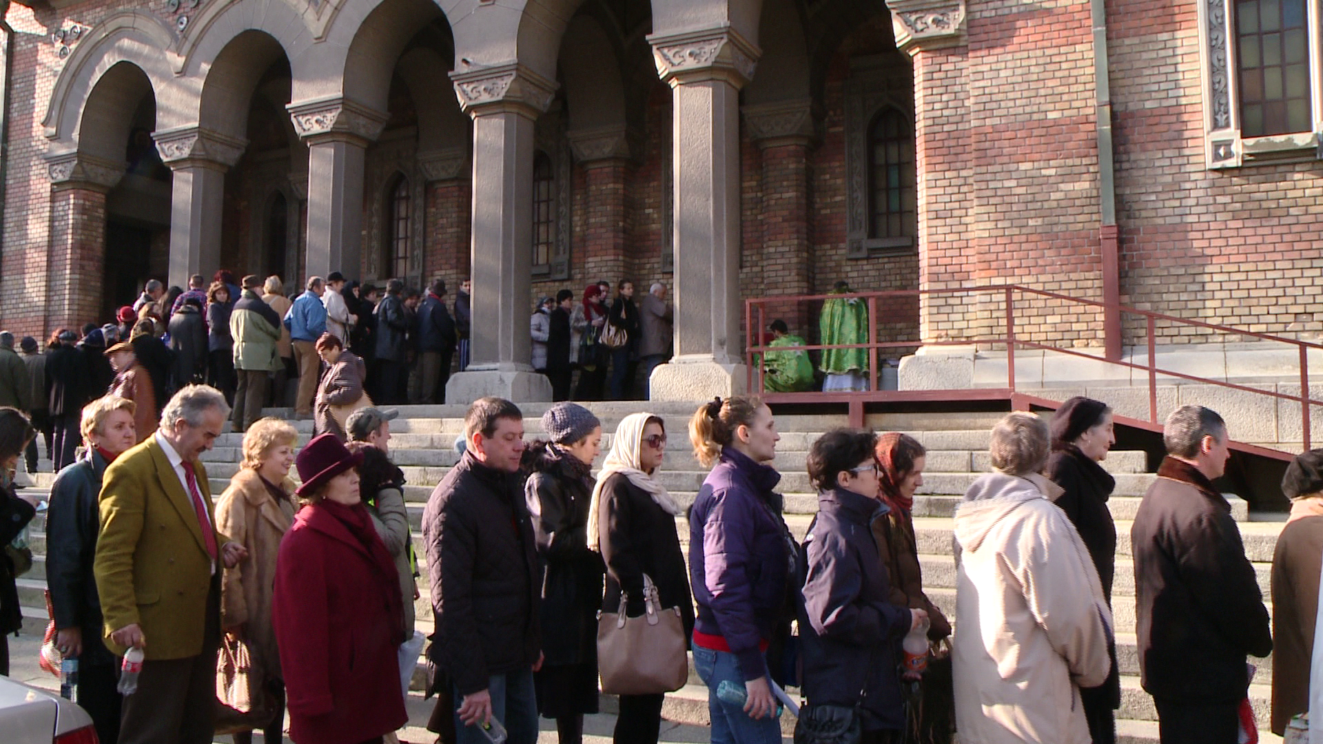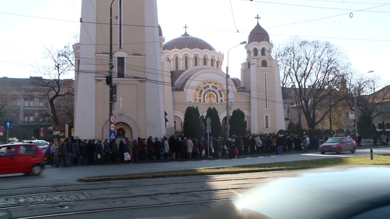La toate bisericile ortodoxe din Timisoara au fost pregatite vase cu apa sfintita, iar credinciosii au facut cozi de cateva sute de metri pentru a lua acasa agheasma.