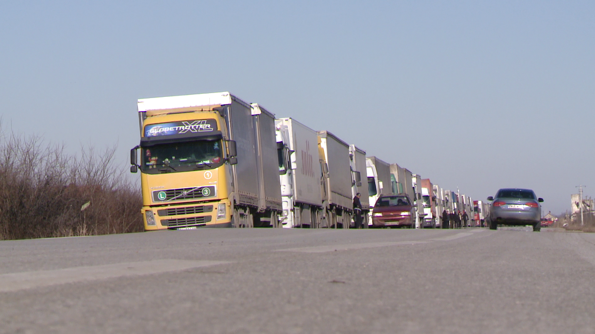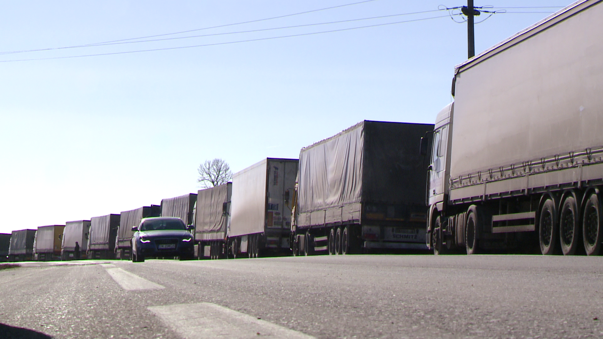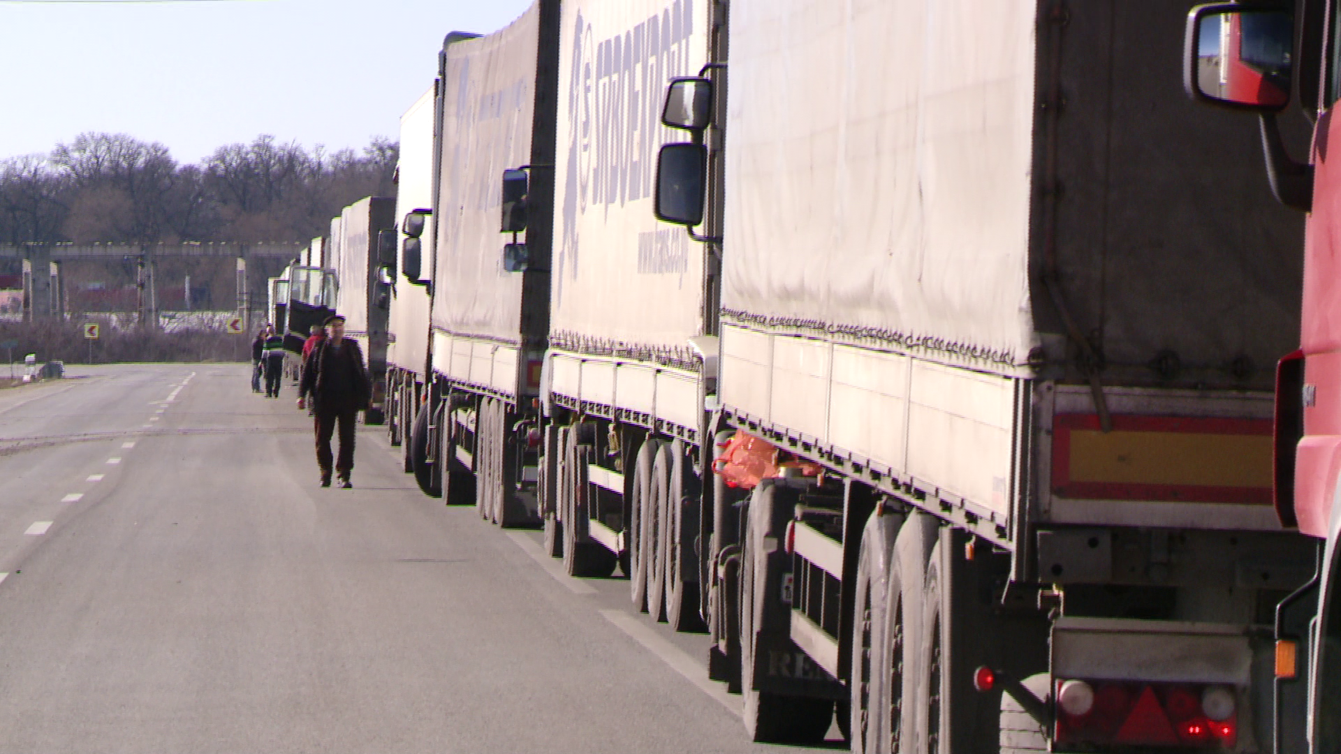 Peste 100 de TIR-uri au fost blocate,intreg weekend-ul trecut, in Romania, la granita, dupa ce autoritatile din tara vecina au decretat cod rosu de viscol, iar vantul a batut chiar si cu 170 de kilometri pe ora.