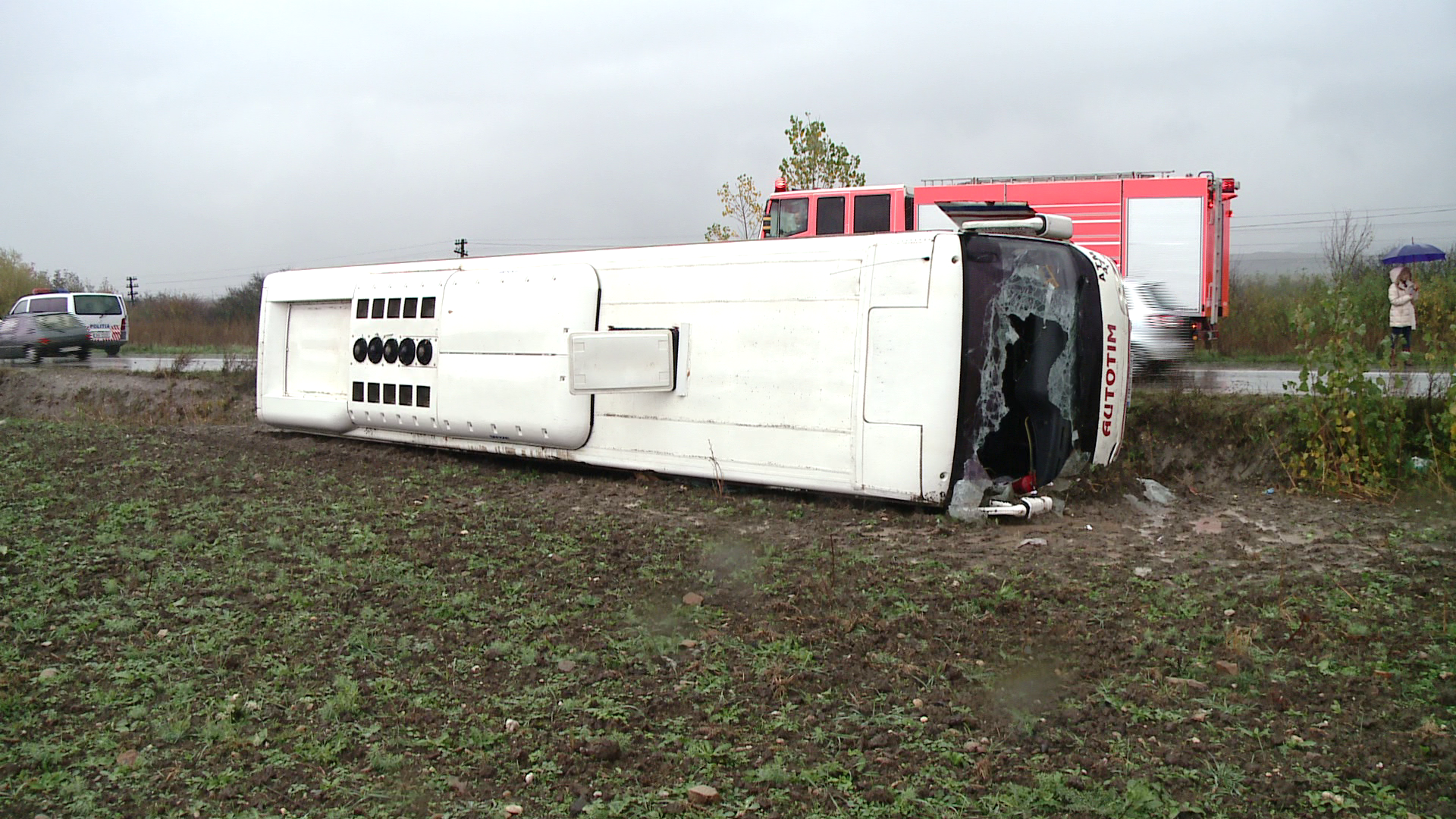 Purtatorul de cuvant al Politiei Judetene Timis, Ionut Bocancea, a declarat ca autobuzul, care apartine unei firme de transport de persoane din judet, s-a rasturnat in sanţul de la marginea drumului judetean, intre localitatile Pischia si Fibis.