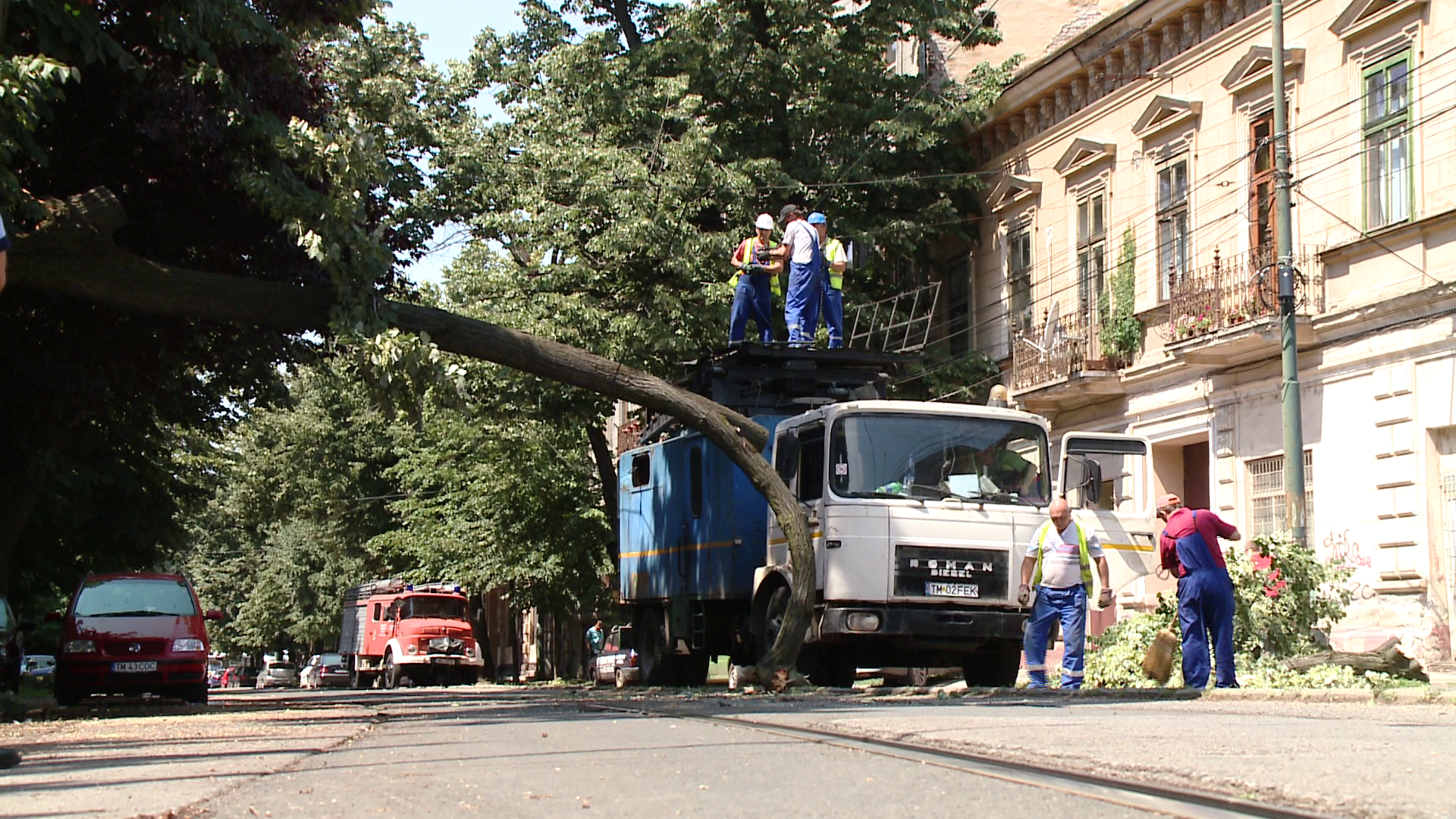 Pompierii din Timisoara au indepartat in acest sfarsit de saptamana 20 de copaci care au cazut pe sosele. In urma furtunilor, un semafor din oras si patru masini au fost avariate. De asemenea, la fiecare furtuna mai puternica, la 112 sunt inregistrate zeci de apeluri, prin care timisorenii anunta ca arborii au fost pusi la pamant.
