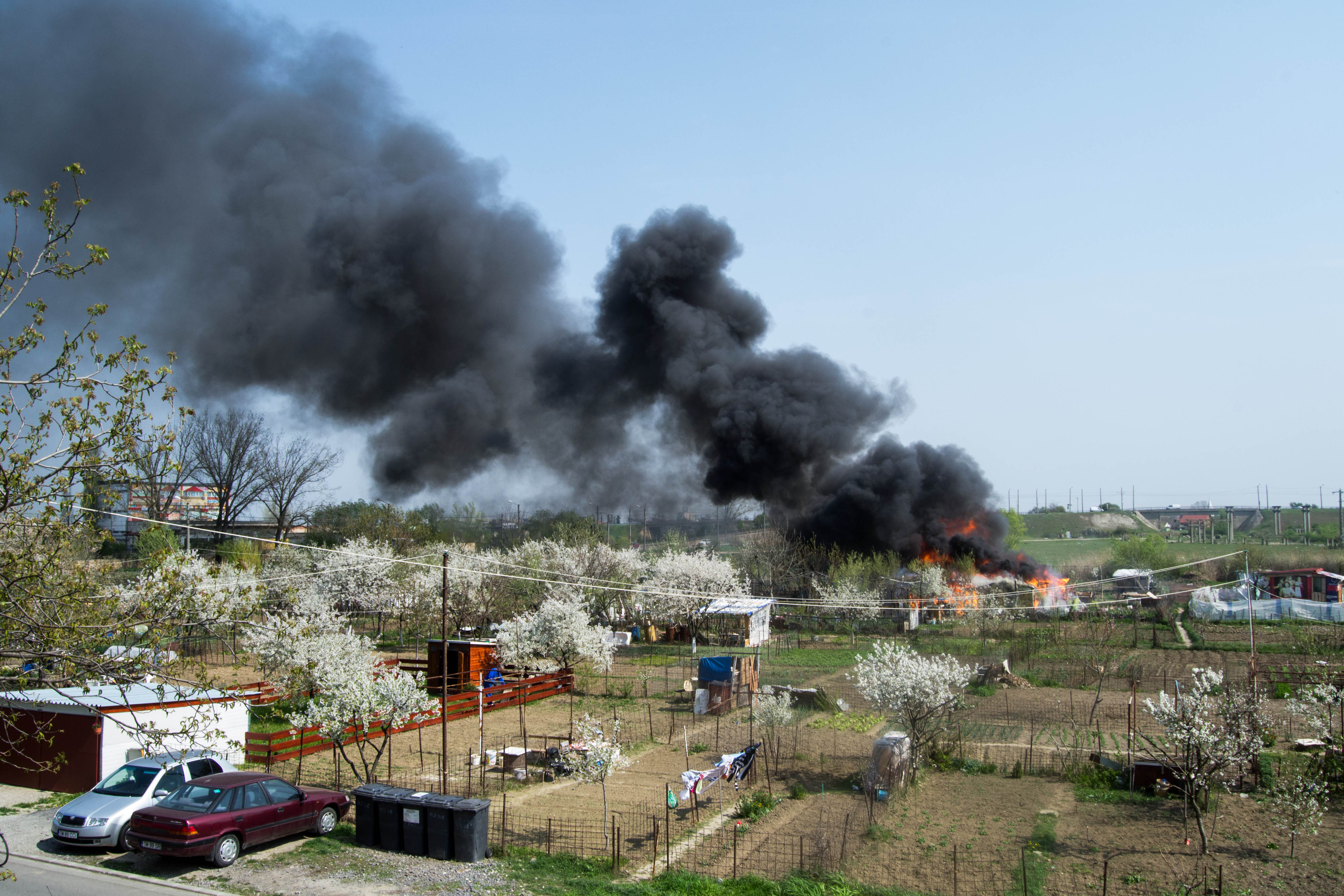 Flacari uriase au putut fi vazute astazi, pe strada Polona, la marginea Timisoarei, dupa ce o anexa a luat foc.