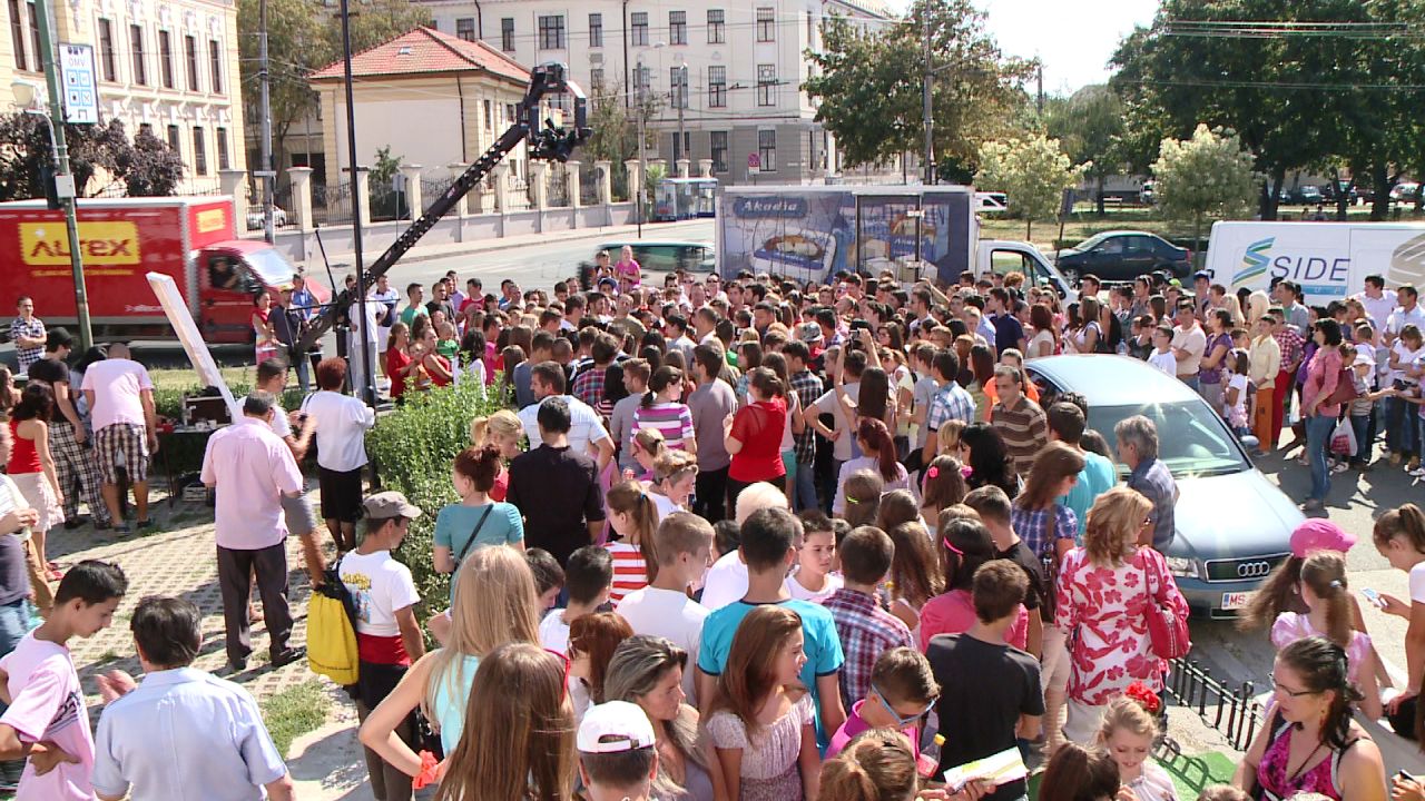 Dis de dimineata, timisoreni si nu numai au venit cu mic cu mare sa se inscrie la preselectii. Parcarea hotelului unde s-au desfasurat inscrierile s-a umplut de trupe de dansatori, acrobati si cantareti.