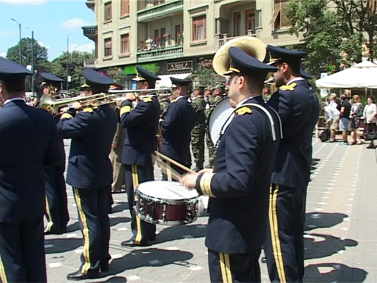 Ora 12,15 – Monumentul Crucificarii din fata Catedralei – intonarea imnului national, slujba de pomenire a eroilor, depuneri de coroane si jerbe de flori, defilarea garzii de onoare