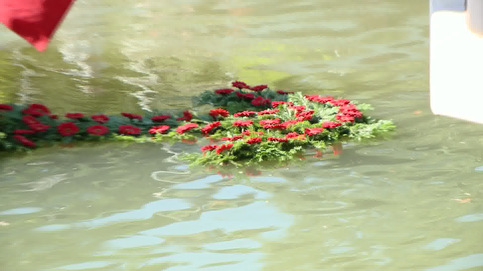 Un moment foarte placut pentru cei veniti sa priveasca festivitatile, a fost lasarea la apa a unei ancore din flori, in memoria eroilor militari.