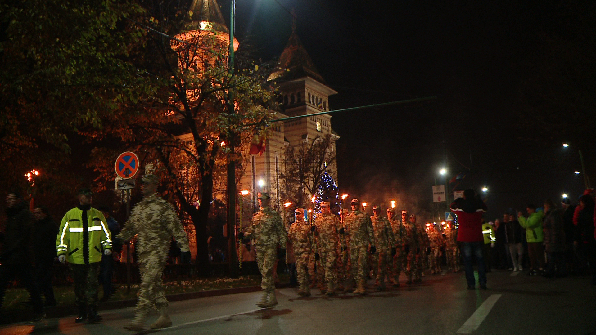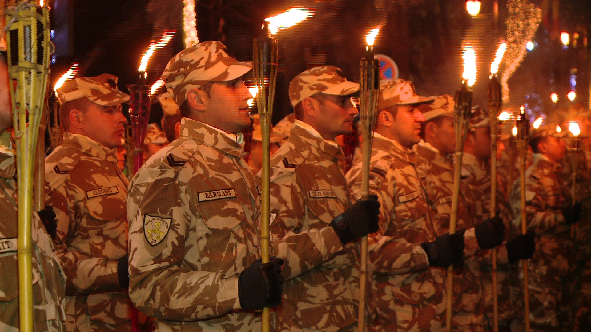 Parada militara la care si-au dat concursul peste 600 de angajati ai armatei a fost urmata, aseara, de o defilare cu torte.