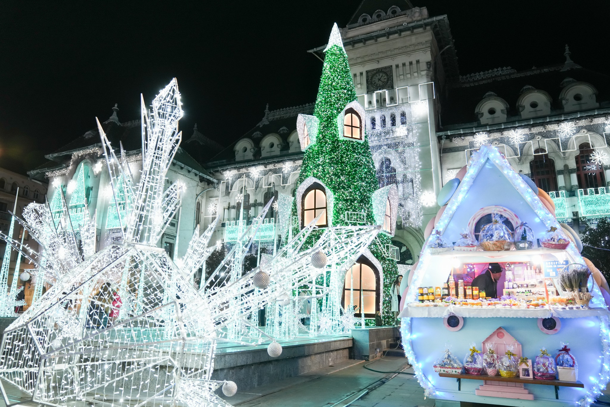 Bradul de Crăciun din Craiova a fost desemnat cel mai frumos din Europa în 2023. Cum arată „Bradul cu ferestre”