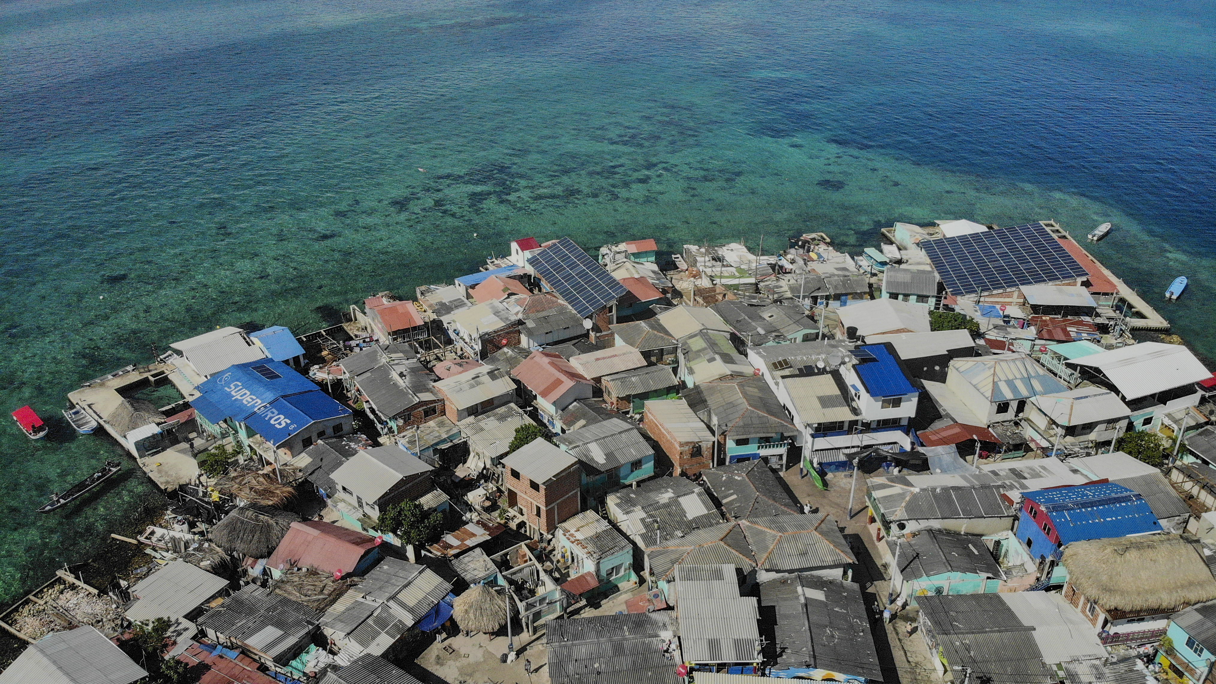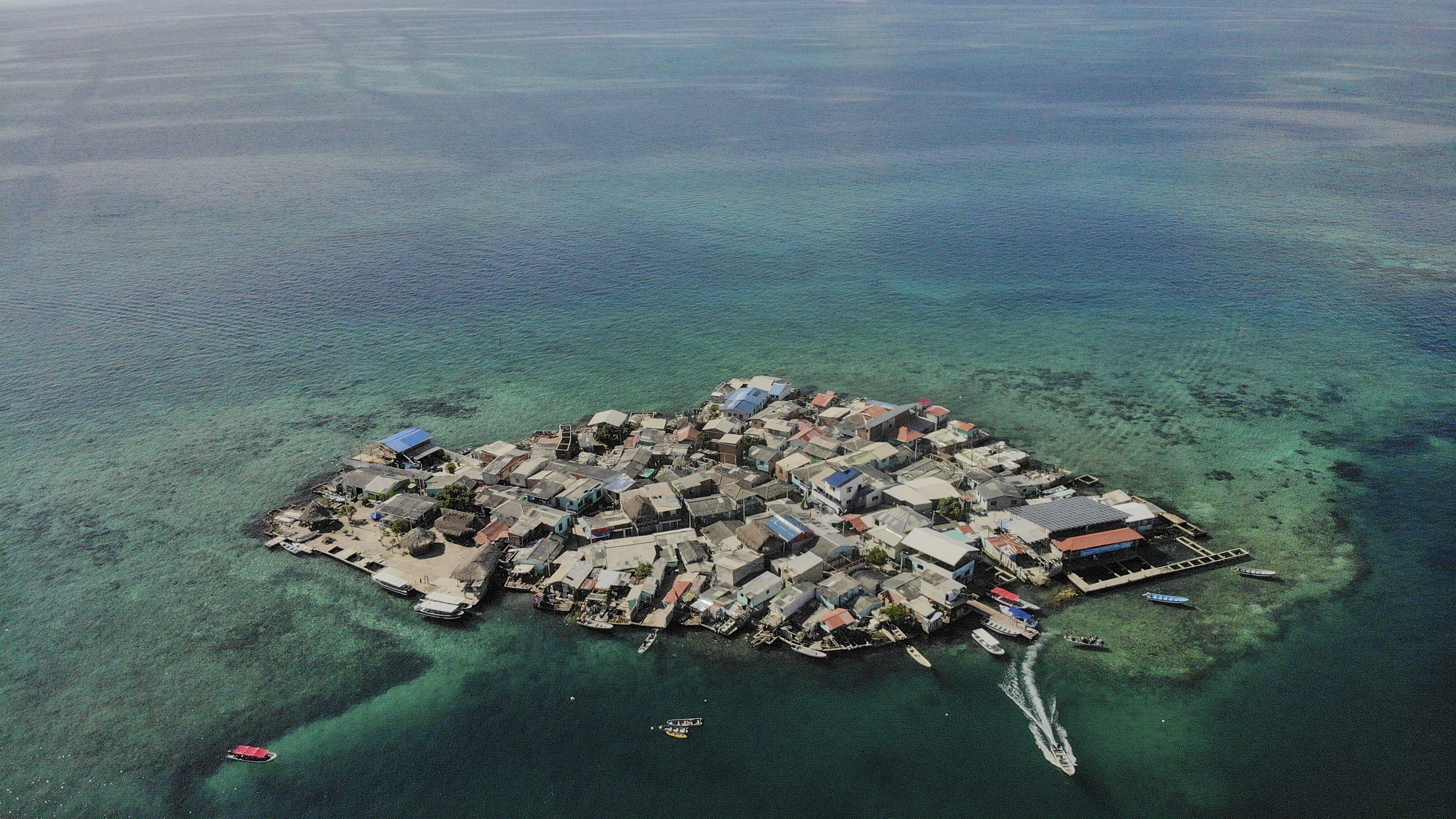 Văzută de sus, Santa Cruz del Islote pare o pată ce se pierde în Marea Caraibilor, dar călătoria de o oră și jumătate de pe continent până acolo este una spectaculoasă.