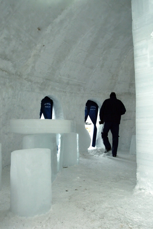 Construit in totalitate din gheata, de catre mestesugarii locali, hotelul a fost construit prima data in anul 2005 si de atunci este refacut in fiecare iarna, fiind o destinatie foarte cautata in perioada Sarbatorilor.