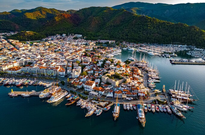 Orașul Marmaris este situat la punctul de întâlnire dintre Marea Egee și Marea Mediterană.