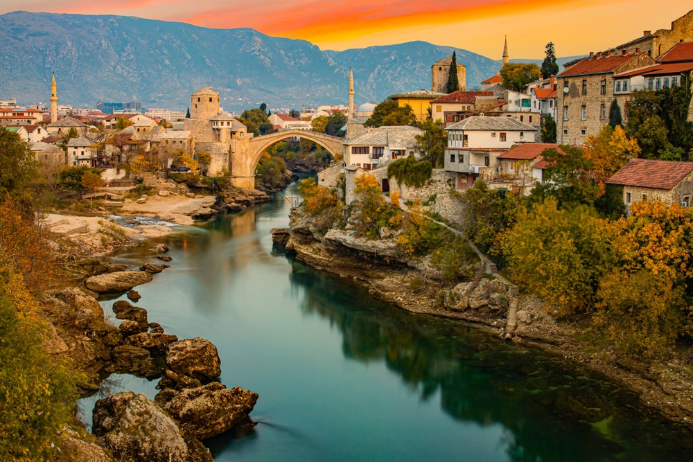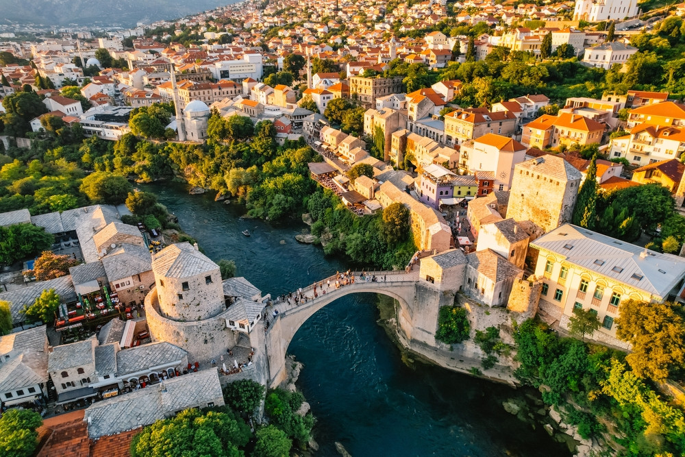 Mostar impresionează prin istoria sa captivantă, străzile pavate cu piatră cubică și clădirile pitorești, care datează încă din secolul al XV-lea, deși majoritatea sunt din anii 1800. Orașul este așezat în sudul țării, pe malul râului Neretva River, peste care se întinde celebrul său pod medieval, scrie Express.