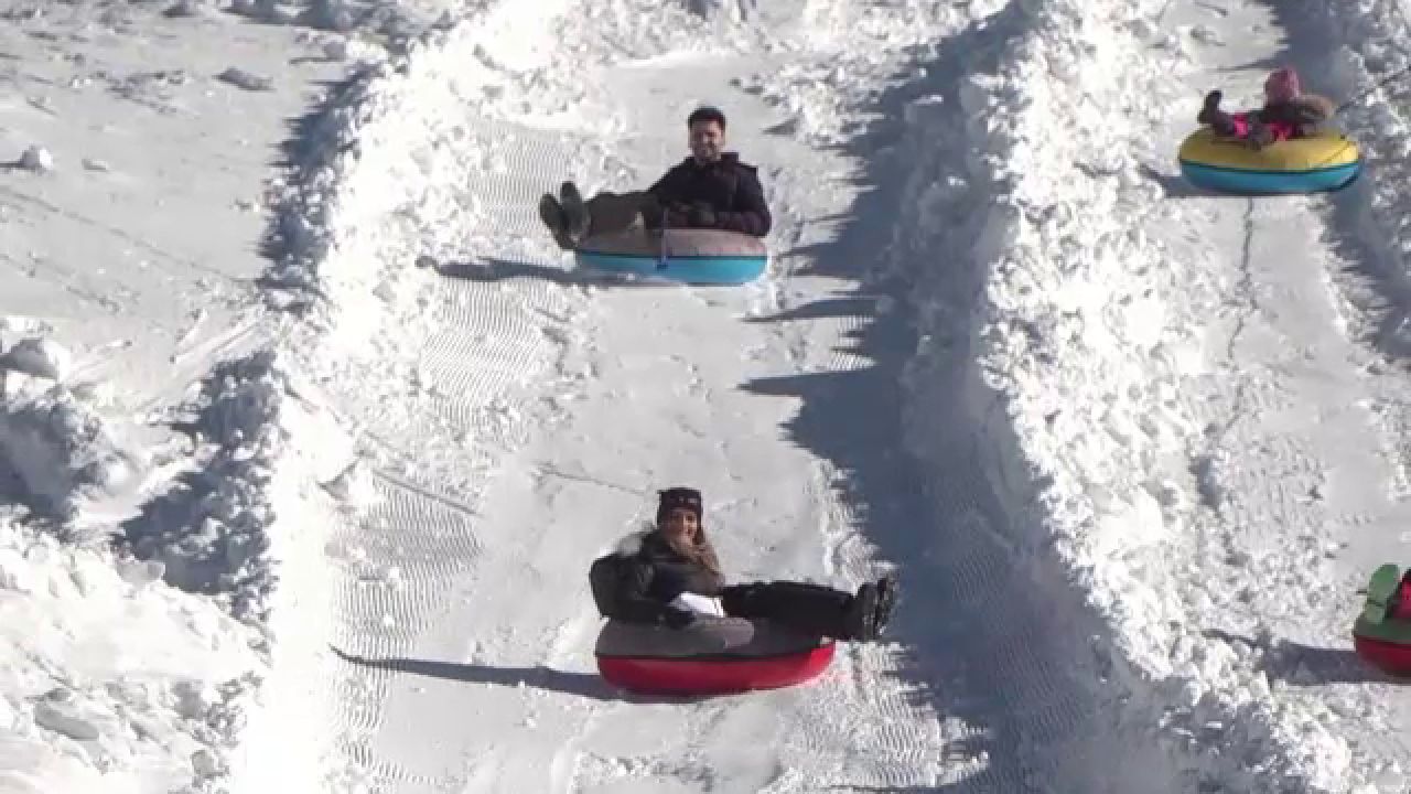 Mai norocoşi au fost turiştii care au ales pentru acest final de săptămâna - zona acoperită de zăpadă de la Bâlea Lac. Pe apă îngheţată, unii au alunecat cu barca trasă de snowmobil.