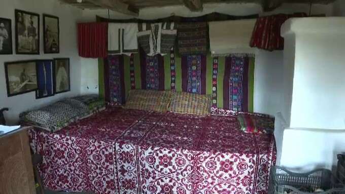 Doina Pană – ghid turistic, filmată în camera în care a crescut Brâncuși: „Camera de locuit, 7 copii, doi părinți, dormeau într-o asemenea cameră. La vremea aceea asta era o casă mai înstărită”.