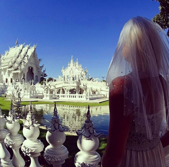 Imbracata in vechea ei rochie de mireasa, cehoaica s-a fotografiat in fata celor mai cunoscute obiective turistice din destinatii precum Turcia, Nepal, India, Emiratele Arabe Unite sau Thailanda.