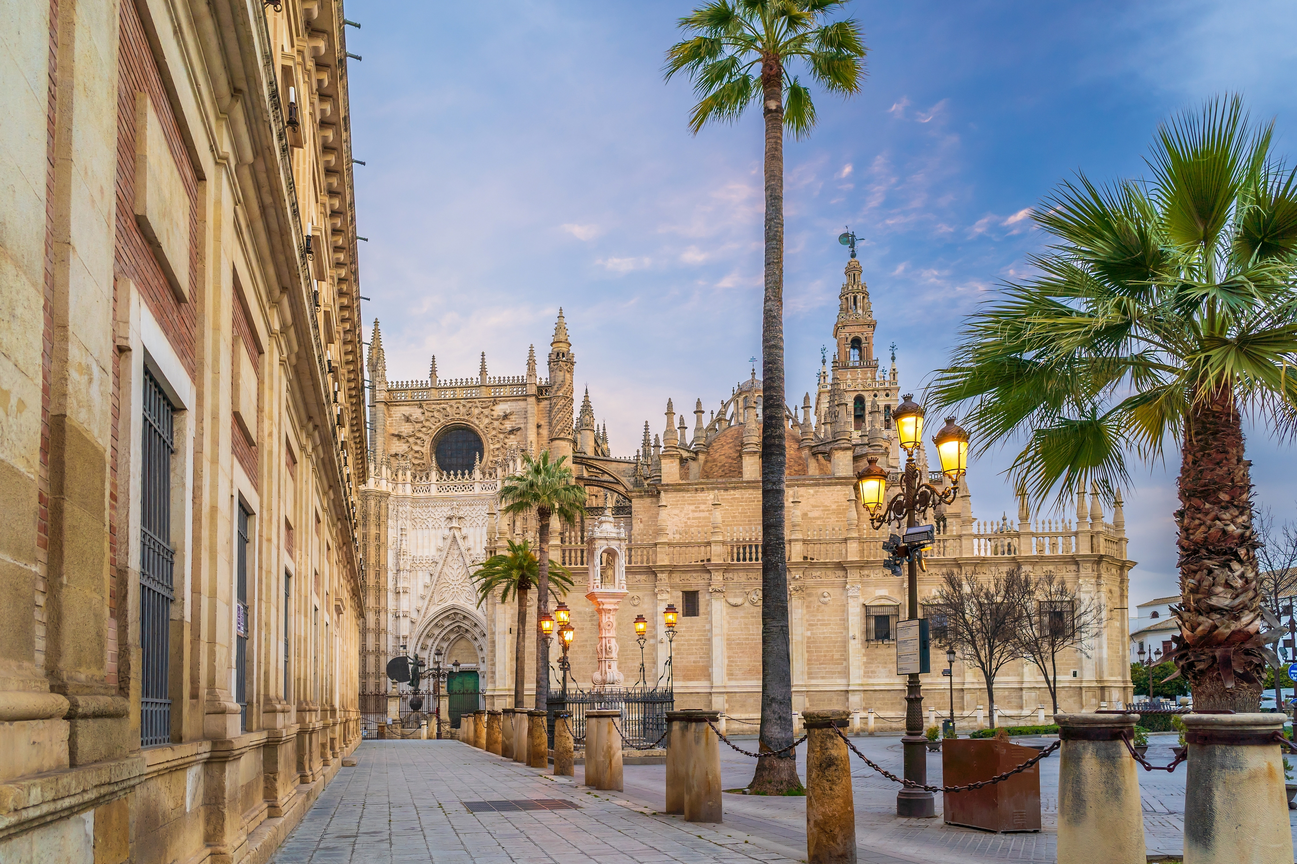 Un reper dominant al orizontului Sevillei este Catedrala, alături de turnul La Giralda. Catedrala din Sevilla este cea mai mare catedrală gotică din lume, iar dimensiunea sa este evidentă încă din exterior. La Giralda este turnul clopotniță și se ridică la 105 metri. Inițial, a fost minaretul moscheii care se afla pe acest loc. Moscheea a fost demolată în 1401 pentru a face loc catedralei, după ce fusese transformată în lăcaș creștin în 1248, în urma cuceririi orașului de către Ferdinand al III-lea.