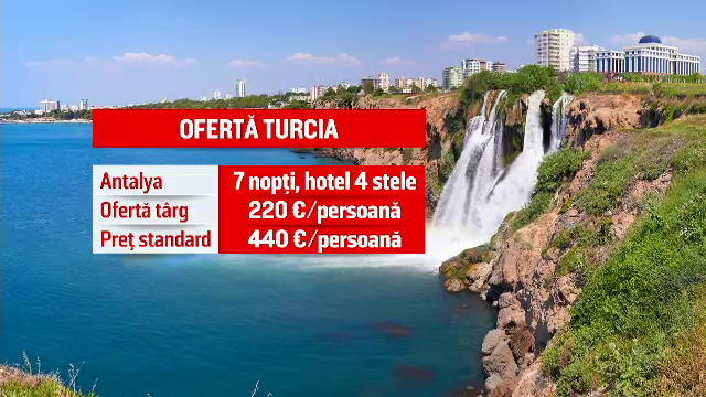 Mulţi români sunt deja cu gândul la vară. Pentru 7 nopţi în Antalya, de exemplu, vor plăti 220 de euro de persoană la un hotel de patru stele. Pachetul este cu 50 la sută mai ieftin dacă îl cumpără acum de la târg.