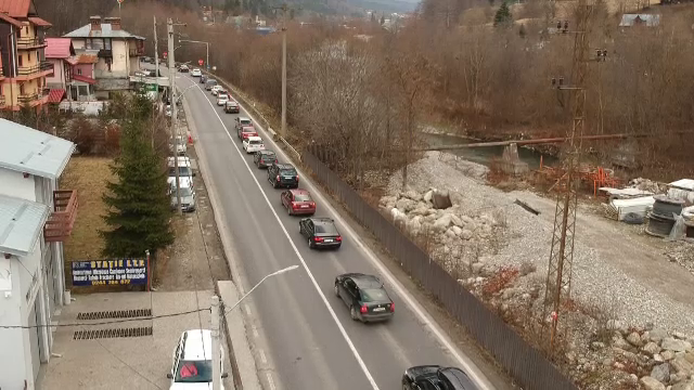 Se circulă cu mare dificultate pe Valea Prahovei. Pe Drumul Naţional 1, la intrare în Sinaia, s-au format cozi, pe centura oraşului. Poliţiştii spun că sunt coloane de maşini şi în staţiunile Buşteni şi Predeal.