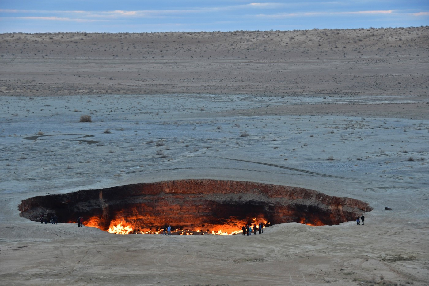 Această „Poartă către Iad” se află în apropierea satului Darvaza, în inima deșertului Karakum, și măsoară aproximativ 60–70 de metri lățime și circa 30 de metri adâncime. Vizibil de la kilometri distanță, craterul în flăcări a devenit o atracție turistică majoră a Turkmenistanului.