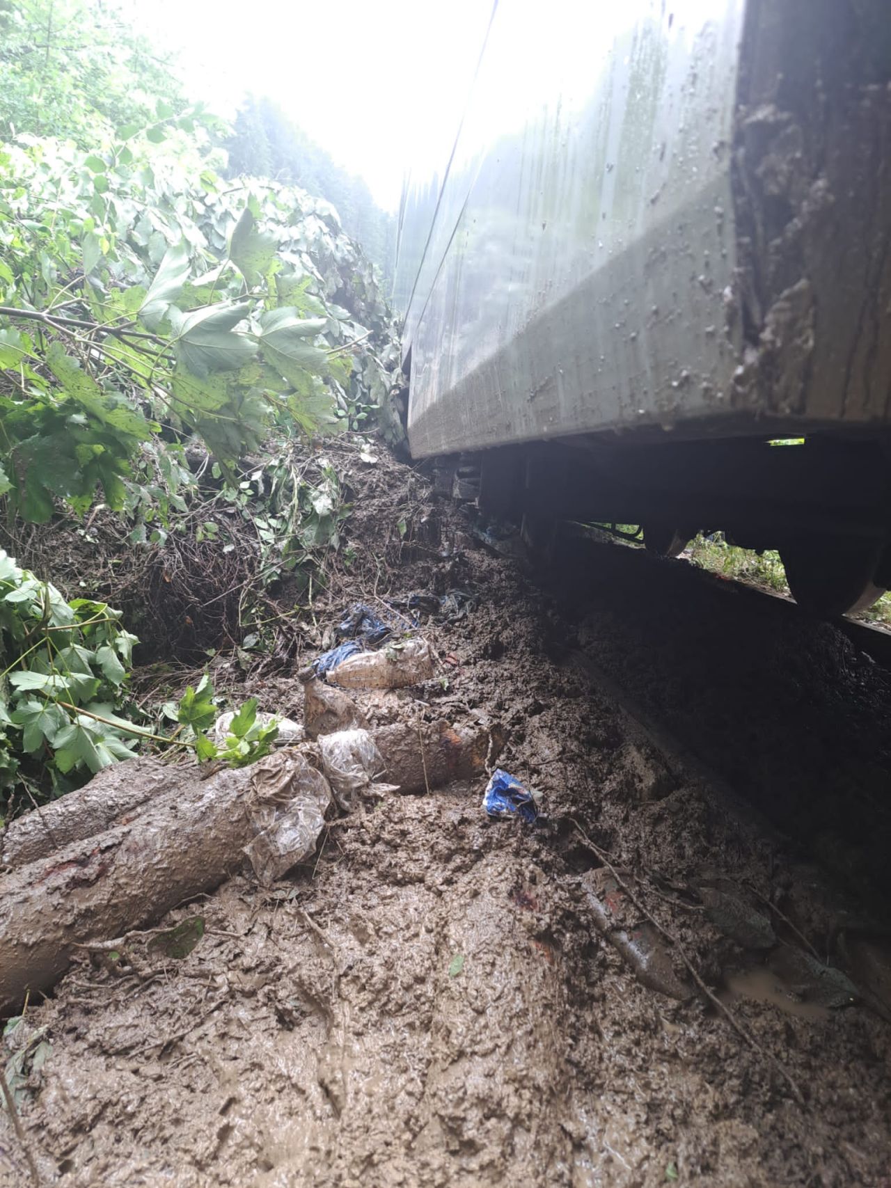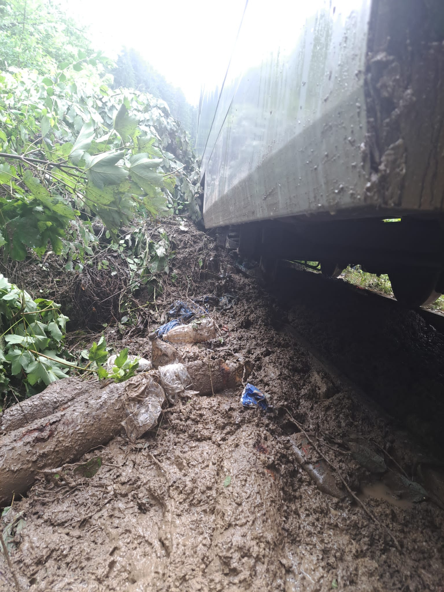 Două trenuri cu 450 de călători au fost blocate din cauza aluviunilor căzute pe calea ferată, în Suceava