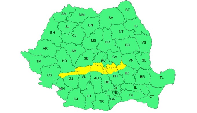 Totodată, meteorologii au emis o atenţionare Cod galben de ploi însemnate cantitativ, valabilă de joi, de la ora 10:00, până vineri, la aceeaşi oră. Astfel, în zona montană a judeţelor Gorj, Vâlcea, Argeş, Dâmboviţa, Prahova, Buzău şi Braşov va ploua însemnat cantitativ şi se vor acumula 25-30 l/mp şi, izolat, peste 40 l/mp.