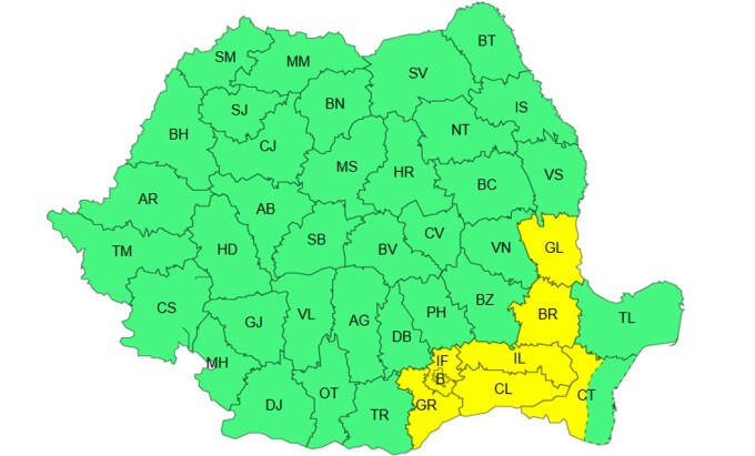 În aceste regiuni va fi caniculă și disconfort termic ridicat, indicele temperatură-umezeală (ITU) atingând pragul critic de 80 de unități. Temperaturile maxime se vor situa între 35 și 38 de grade.
