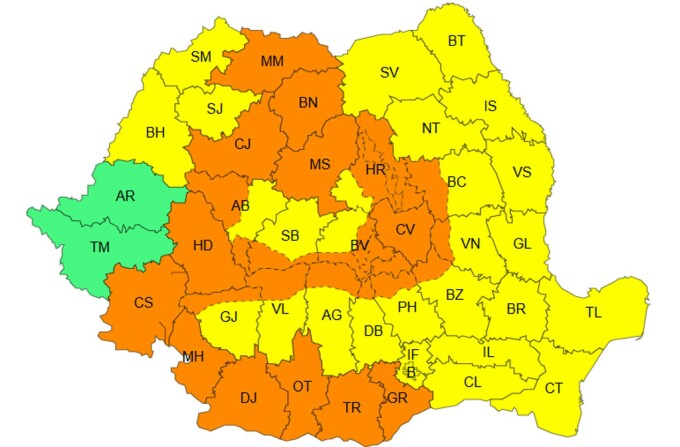 Zone afectate: Caraș Severin, Hunedoara, Cluj, Mureș, Bistrița-Năsăud, Maramureș, Covasna și zona montană