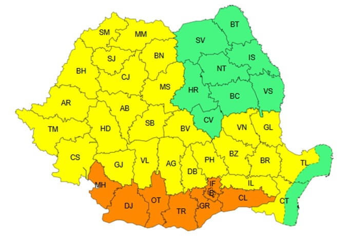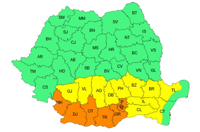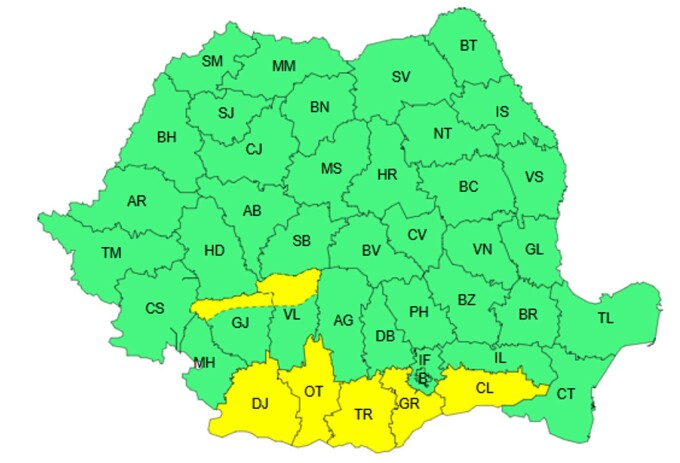 În sudul și vestul Olteniei, precum și în sudul și centrul Munteniei, valul de căldură va persista, va fi caniculă, disconfort termic accentuat, iar indicele temperatură-umezeală (ITU) va depăși pragul critic de 80 de unități. Temperaturile maxime se vor încadra între 37 și 39 de grade. Minimele termice vor fi de 20...22 de grade, astfel că vor caracteriza o noapte tropicală.
