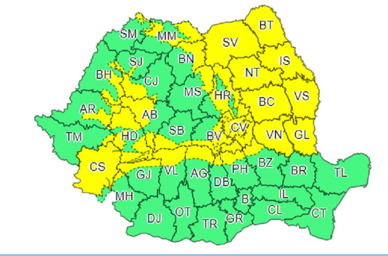 Potrivit ANM, avertizarea meteo este valabilă de sâmbătă, ora 18:00 până luni, ora 06:00.