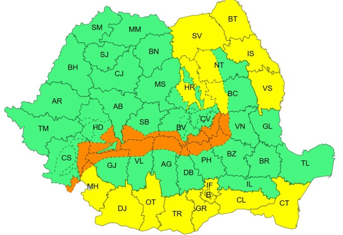 Administrația Națională de Meteorologie (ANM) a emis joi o informare meteorologică de vreme severă, valabilă până sâmbătă dimineață în mai multe zone din țară.