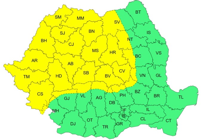 Cod galben de temperaturi minime deosebit de scăzute, ger