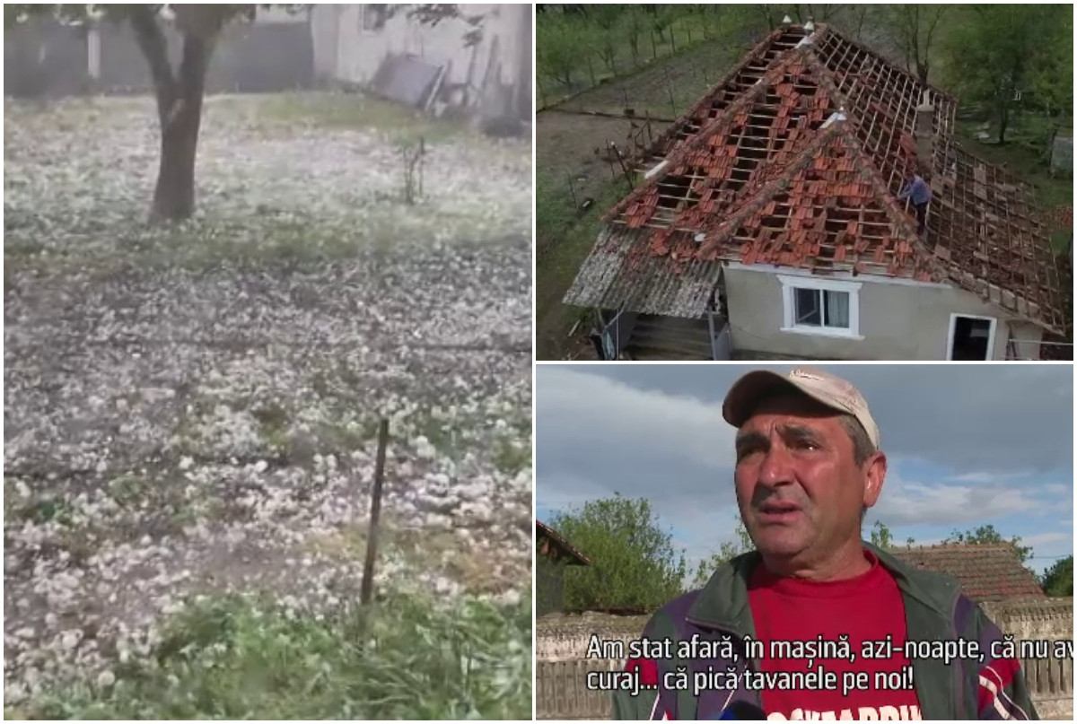 Furtunile au făcut ravagii în țară. Un sat din Mehedinți a fost „ciuruit” de grindină cât mărul: „Nu mai e nicio țiglă!”