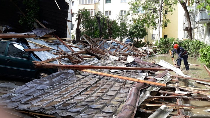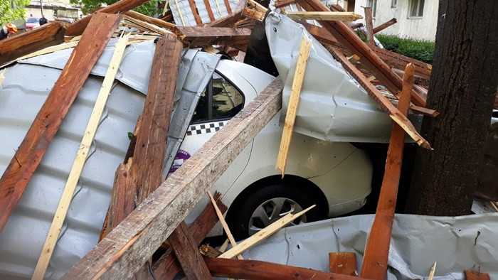 O furtună puternică s-a abătut, sâmbătă, asupra orașului Timișoara. Vântul a rupt copaci și a smuls acoperișuri, mai multe mașini fiind avariate.