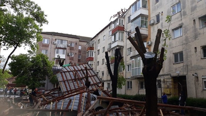 Vântul a rupt copaci și a zburat acoperisuri de tablă pe care le-a aruncat in strada, chiar peste masini parcate, informează Opinia Timișoarei.