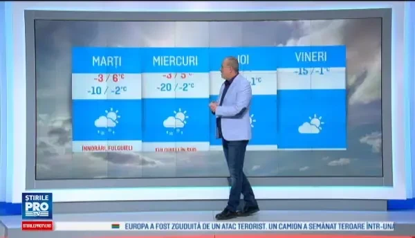 Miercuri mai apar ceva innorari in sud, in est, in zonele joase din centru si vest, insa doar in dealurile Olteniei si pe litoral vor fi conditiile de fulguiala. Noapte va fi foarte rece, cu MINUS 20 de grade in depresiuni.